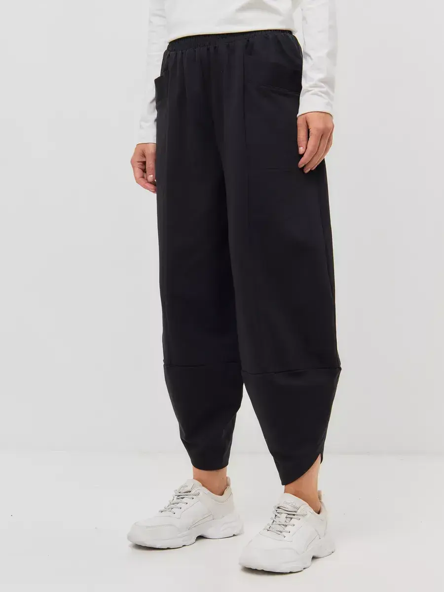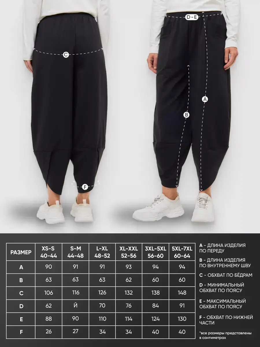 Откройте для себя идеальные женские брюки, которые станут незаменимой частью вашего гардероба этой осенью. Наши брюки бананы женские сочетают в себе утонченность и комфорт, что делает их идеальными как для офисных будней, так и для повседневного ношения. Силуэт укороченные джоггеры 7/8, которые популярны среди молодежи. Изготовленные из премиального средиземноморского трикотажа, они обеспечивают максимальный комфорт и свободу движений, а так же не нарушают циркуляцию воздуха, благодаря дышащему материалу. Наши бананы женские, плод кропотливой работы швей, конструкторов и дизайнеров, которые придумали оригинальный и сложный дизайн, чтобы Вы могли выделяться в толпе, офисе. Широкие оверсайз штаны будут очень удобными для полных девушек, женщин больших размеров плюс сайз (plus size) и будущих мам (беременных). Актуальны на любое время года: на осень - весну. Воздушные, хлопковая основа позволяет телу дышать, а Вам - чувствовать себя уютно, как в спортивных. Черныетемный цвет придает им элегантность. Мы стараемся для Вас и будем очень рады Вашим отзывам и фотоотзывам! Делитесь впечатлениями и эмоциями! А так же добавляйте бренд в любимые, чтобы следить за поступлением новинок, не пропустить новые акции и начало интересных распродаж!