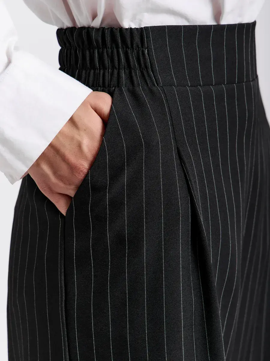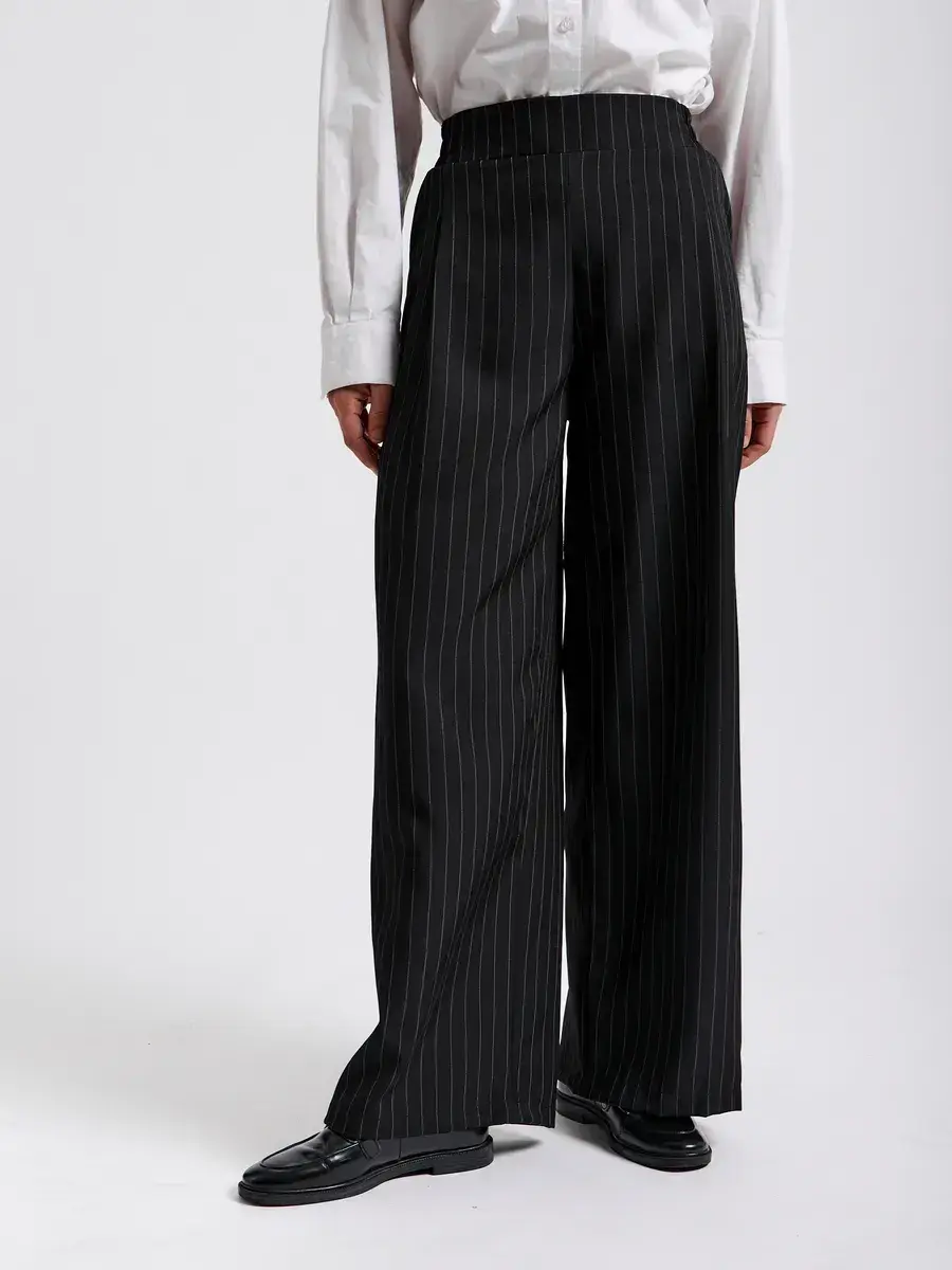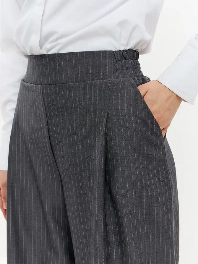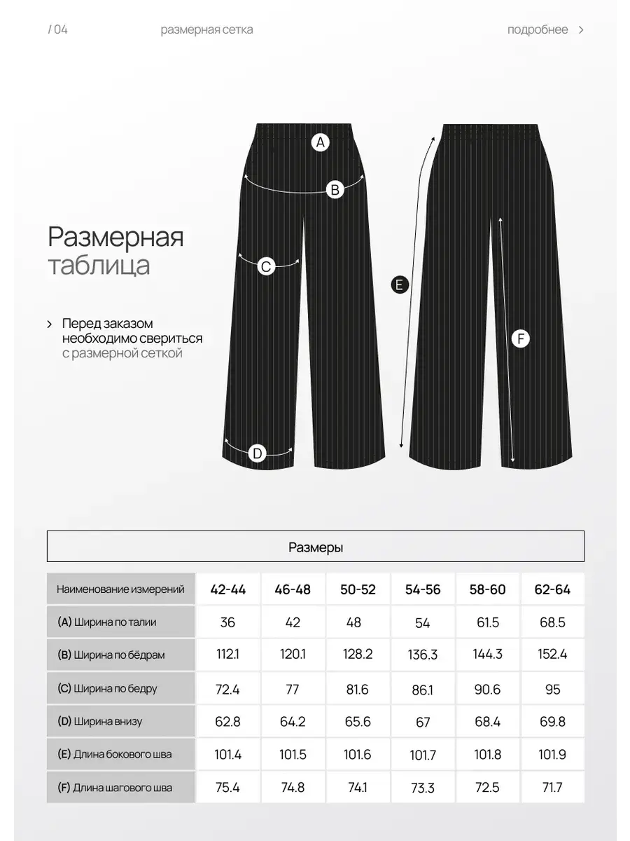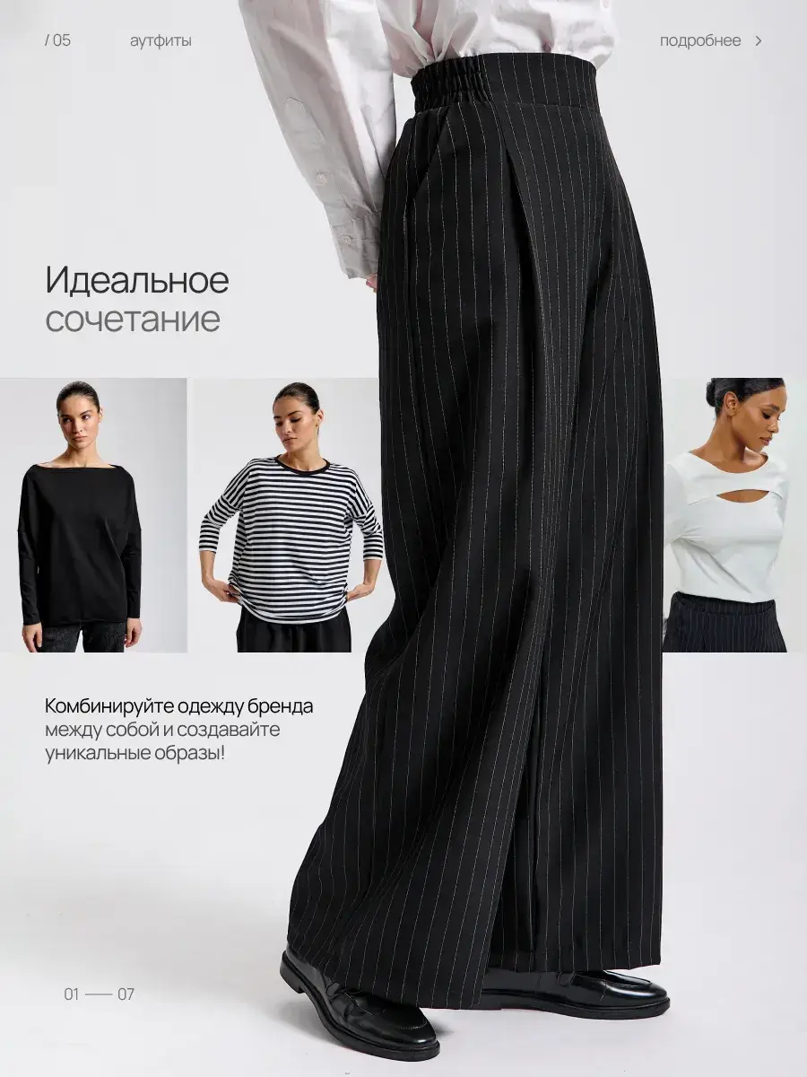 Представляем вашему вниманию элегантные женские брюки палаццо. Вы долго просили вернуть брюки палаццо женские в продажу, и мы с радостью сообщаем, что мы готовы представить вам новую модель из брючной ткани. Классические женские брюки – идеальный выбор для стильной женщины, ценящей комфорт и элегантность. Модель выполнена в универсальном черном цвете в полоску, который гармонично впишется в гардероб на любую осень. Эти легкие брюки клеш подойдут как для высоких, так и для невысоких женщин, для женщин больших размеров , на полных женщин плюс сайз (plus size). Брюки палаццо женские на осень подходят для осенних прогулок, офиса и повседневной носки. Благодаря фасону палаццо и широкие штанинам изделие визуально вытягивает силуэт и скрывает недостатки фигуры, а пояс на резинке обеспечивает отличную посадку и удобство даже для больших размеров и беременным. Практичный фасон штаны-клеш выгодно подчеркнет достоинства любой фигуры и добавит изысканности образу. Модель создана с учетом последних трендов, а продуманная конструкция обеспечивает долгий срок службы. брюки палаццо женские на резинке осенние идеальный выбор для офиса, похода на свидание или незабываемых осенних прогулок. Эти брюки палаццо женские на резинке станут отличным дополнением к осеннему гардеробу. Универсальность, практичность и актуальный дизайн делают их выгодным решением для тех, кто ищет комфорт и стиль в одном изделии. Брюки женские паллацо оверсайз идеально сочетаются с различной обувью и верхней одеждой, что позволяет создавать разнообразные образы на каждый день и для особых случаев. Спасибо за выбор нашего бренда! Мы продолжим вас радовать нашими новинками!