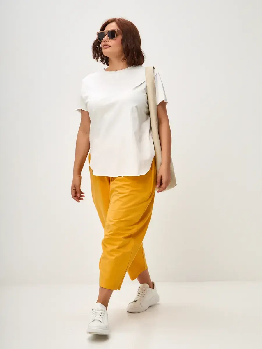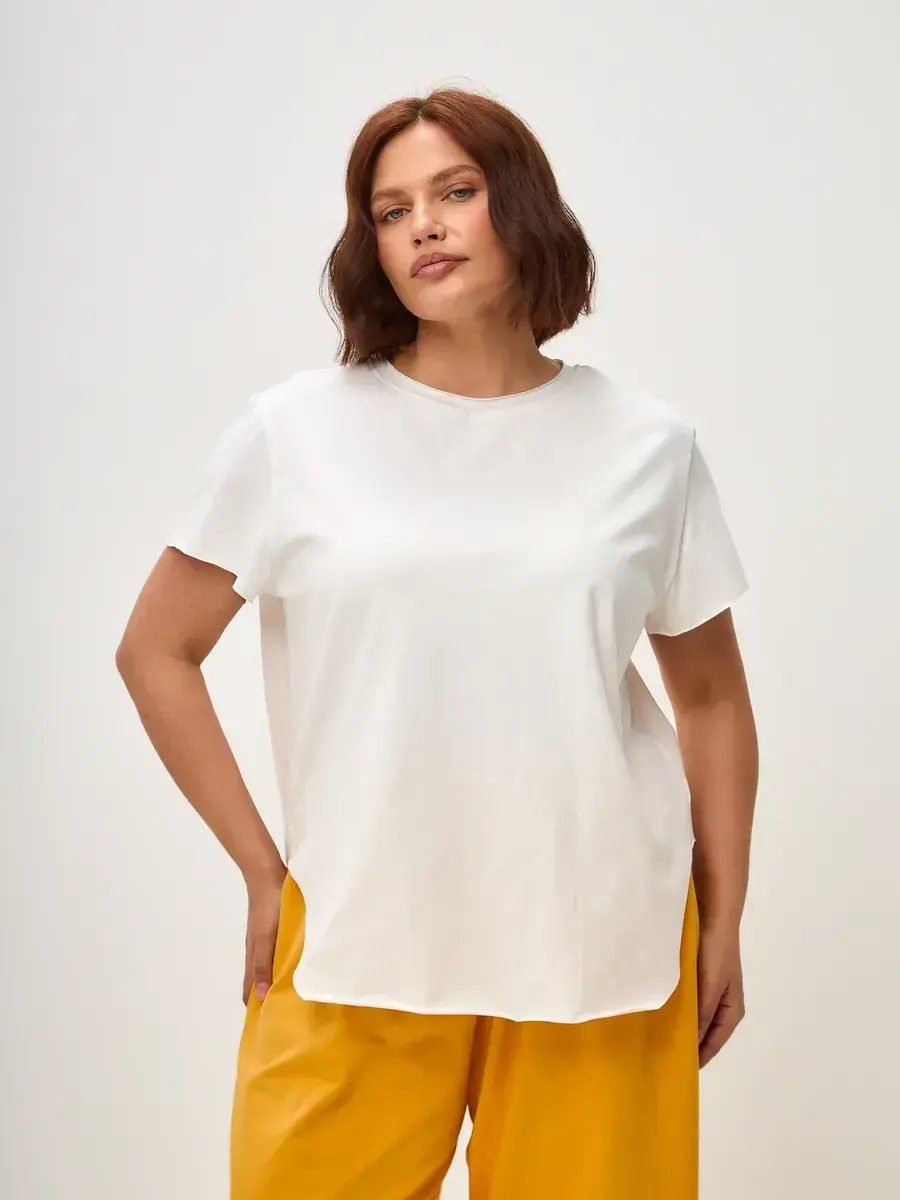 Специально для летнего сезона, мы приготовили для Вас новую дизанерскую женскую футболку. Откройте для себя идеальное сочетание стиля и комфорта с нашей длинной женской футболкой оверсайз в модном молочном оттенке. Эта стильная и свободная футболка создана специально для современных женщин, ценящих индивидуальность и универсальность гардероба. Благодаря продуманному крою, изделие подходит как для прогулок в летние дни, так и для офиса в теплое время года, легко сочетаясь с брюками, юбками или джинсами. Наша удлиненная женская футболка отлично смотрится на девушках и женщинах больших размеров, подчеркивая достоинства фигуры и обеспечивая абсолютный комфорт. Мягкая ткань премиального качества приятна к телу, позволяет коже дышать, а необычный дизайн в стиле бохо делает футболку женскую оверсайз универсальной вещью для любого случая. Это действительно находка для тех, кто ищет летнюю офисную футболку, чтобы насладится стилем и комфортом в жаркий период. Особое преимущество этой модели — оптимальное сочетание свободы движений, элегантности и необычному дизанерскому крою. Благодаря оверсайз-крою футболка не сковывает движения, подходит для активного отдыха и рабочих будней. Молочный цвет подчеркивает свежесть образа, а стильные детали делают ее идеальным выбором для создания модных комплектов. Это прекрасный вариант для тех, кто ищет футболки женские больших размеров, которые будут уместны как на работе, так и на прогулке. Бренд meoney заботится о каждой покупательнице, предлагая широкий выбор размеров и гарантируя высокое качество пошива. Эта летняя удлиненная женская футболка легко стирается, сохраняет форму и насыщенный цвет даже после многочисленных стирок. Оцените свободу, легкость и уверенность, которые дарит эта вещь, и создайте свой уникальный гардероб с акцентом на комфорт и актуальные тенденции