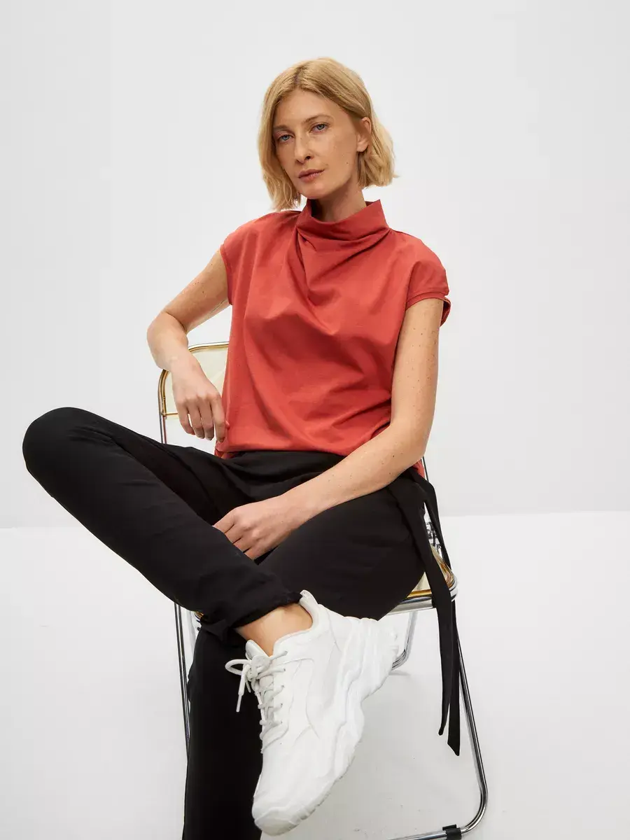 Дорогие дамы, рады представить для Вас нашу необычную женскую футболку с воротником от наших лучших дизайнеров и модельеров. Сочетая в себе элегантность и универсальность стиля бохо, эта футболка женская оверсайз станет вашим идеальным выбором для любого случая, будь-то свидание, праздники, школа, для повседневной носки, а необычный воротник подчеркнет ваш вкус и индивидуальность, как блузка женская. Дизайнерская особенность этой футболки с горлом не только добавляет изюминку в образ, но и позволяет вам выглядеть актуально в любой ситуации, а премиальная хлопковая ткань позволяет вашему телу ощутить легкость и приятные тактильные ощущения. Благодаря своему универсальному оверсайз крою, женская футболка прекрасно подойдет для любого телосложения, подчеркивая вашу фигуру и добавляя уверенности в себе. Наш широкий размерный ряд, позволяет подобрать футболку, как для худых, так и для наших любимых plussize, ищущих футболку больших размеров. Так же отлично подойдет для будущих мам. Трикотажная футболка отлично сочетается с любым низом нашего бренда. Очень ждем от вас отзывов, с любовью команда meoney!