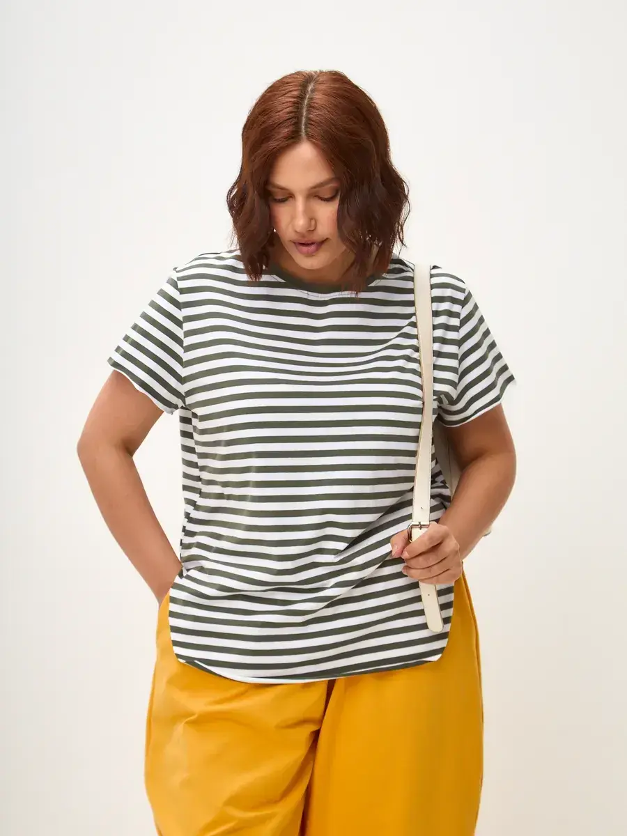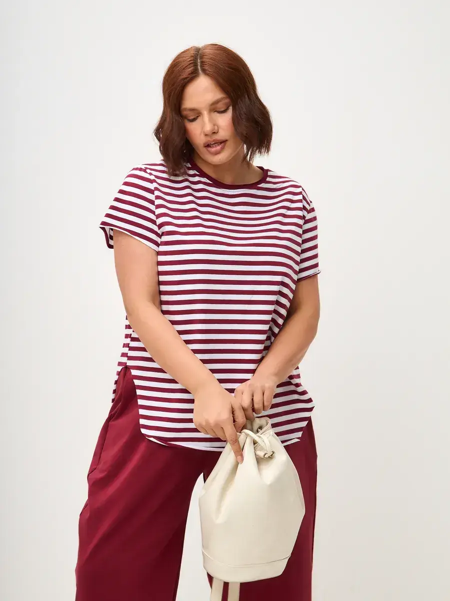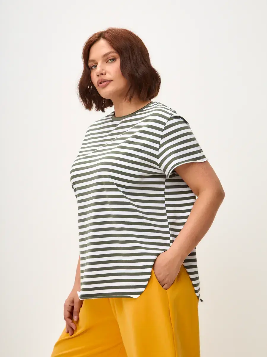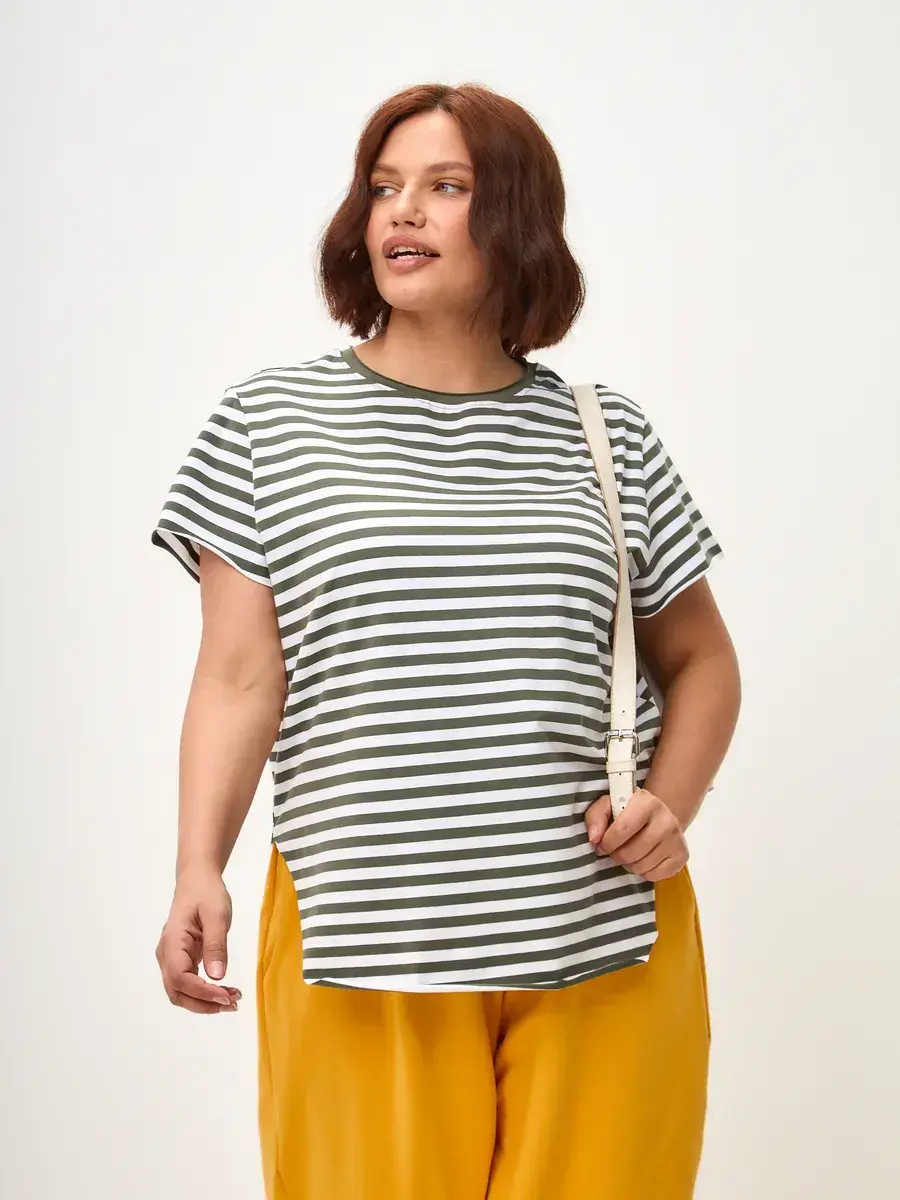 Специально для летнего сезона, мы приготовили для Вас новую дизанерскую женскую футболку. Откройте для себя идеальное сочетание стиля и комфорта с нашей длинной женской футболкой тельяшкой оверсайз в модном молочном оттенке. Эта стильная и свободная футболка в полоску создана специально для современных женщин, ценящих индивидуальность и универсальность гардероба. Благодаря продуманному крою, изделие подходит как для прогулок в летние дни, так и для офиса в теплое время года, легко сочетаясь с брюками, юбками или джинсами. Наша удлиненная женская футболка отлично смотрится на девушках и женщинах больших размеров, подчеркивая достоинства фигуры и обеспечивая абсолютный комфорт. Мягкая ткань премиального качества приятна к телу, позволяет коже дышать, а необычный дизайн в стиле бохо делает футболку женскую оверсайз универсальной вещью для любого случая. Это действительно находка для тех, кто ищет летнюю офисную футболку женскую тельяншку, чтобы насладится стилем и комфортом в жаркий период. Особое преимущество этой модели — оптимальное сочетание свободы движений, элегантности и необычному дизанерскому крою. Благодаря оверсайз-крою футболка не сковывает движения, подходит для активного отдыха и рабочих будней. Молочный цвет подчеркивает свежесть образа, а стильные детали делают ее идеальным выбором для создания модных комплектов. Это прекрасный вариант для тех, кто ищет футболки женские больших размеров, которые будут уместны как на работе, так и на прогулке. Бренд meoney заботится о каждой покупательнице, предлагая широкий выбор размеров и гарантируя высокое качество пошива. Эта летняя удлиненная женская футболка тельяшка женская легко стирается, сохраняет форму и насыщенный цвет даже после многочисленных стирок. Оцените свободу, легкость и уверенность, которые дарит эта вещь, и создайте свой уникальный гардероб с акцентом на комфорт и актуальные тенденции.
