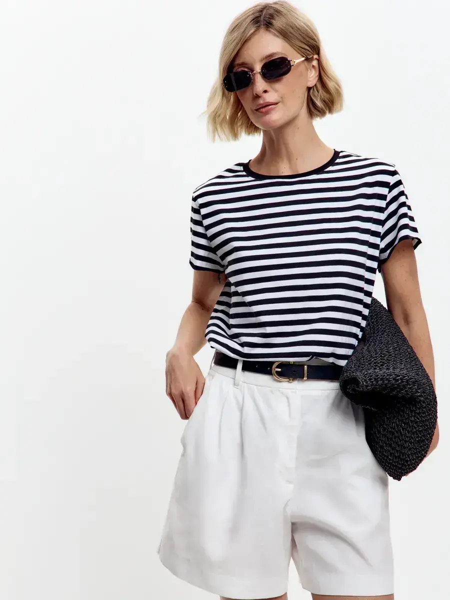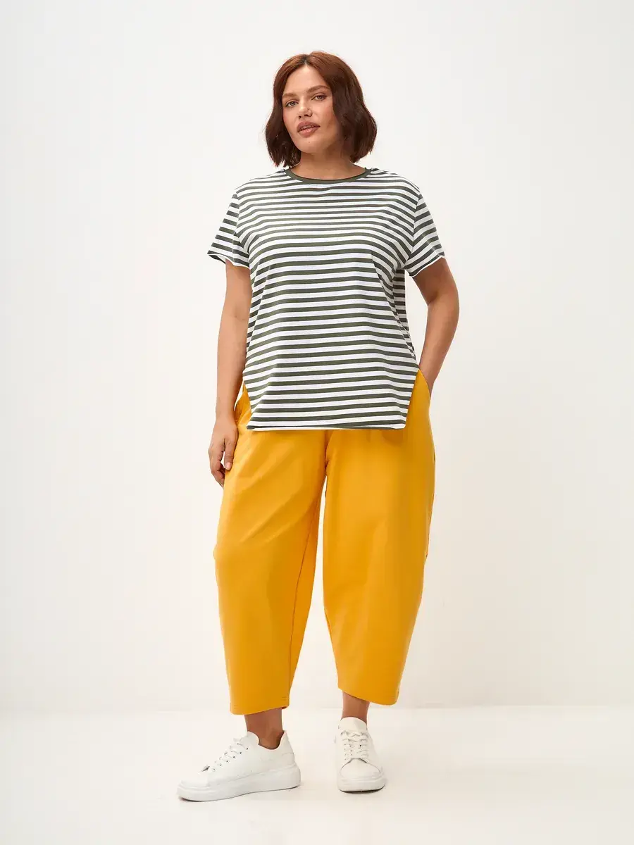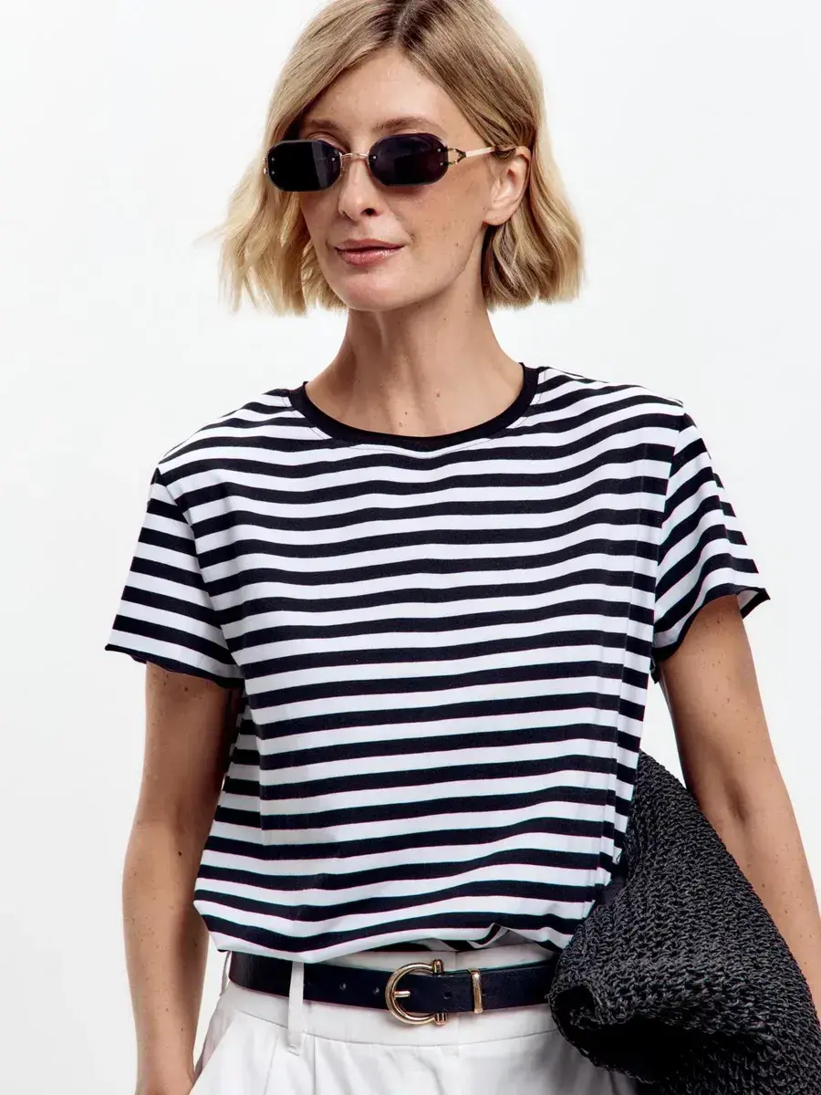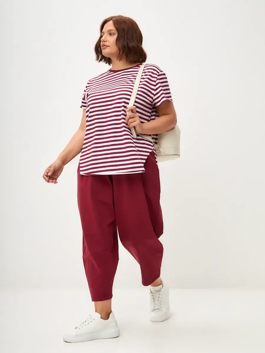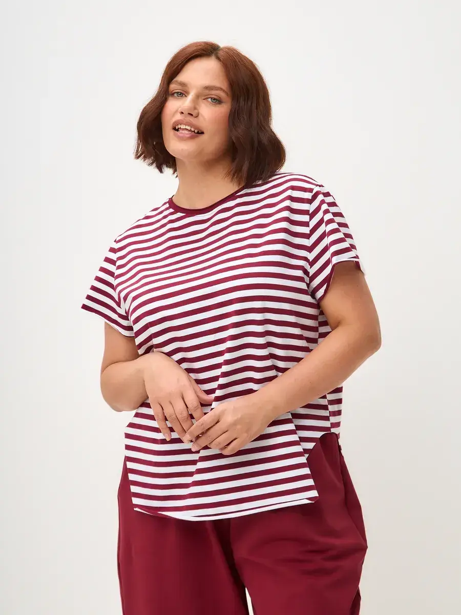Специально для летнего сезона, мы приготовили для Вас новую дизанерскую женскую футболку. Откройте для себя идеальное сочетание стиля и комфорта с нашей длинной женской футболкой тельяшкой оверсайз в модном молочном оттенке. Эта стильная и свободная футболка в полоску создана специально для современных женщин, ценящих индивидуальность и универсальность гардероба. Благодаря продуманному крою, изделие подходит как для прогулок в летние дни, так и для офиса в теплое время года, легко сочетаясь с брюками, юбками или джинсами. Наша удлиненная женская футболка отлично смотрится на девушках и женщинах больших размеров, подчеркивая достоинства фигуры и обеспечивая абсолютный комфорт. Мягкая ткань премиального качества приятна к телу, позволяет коже дышать, а необычный дизайн в стиле бохо делает футболку женскую оверсайз универсальной вещью для любого случая. Это действительно находка для тех, кто ищет летнюю офисную футболку женскую тельяншку, чтобы насладится стилем и комфортом в жаркий период. Особое преимущество этой модели — оптимальное сочетание свободы движений, элегантности и необычному дизанерскому крою. Благодаря оверсайз-крою футболка не сковывает движения, подходит для активного отдыха и рабочих будней. Молочный цвет подчеркивает свежесть образа, а стильные детали делают ее идеальным выбором для создания модных комплектов. Это прекрасный вариант для тех, кто ищет футболки женские больших размеров, которые будут уместны как на работе, так и на прогулке. Бренд meoney заботится о каждой покупательнице, предлагая широкий выбор размеров и гарантируя высокое качество пошива. Эта летняя удлиненная женская футболка тельяшка женская легко стирается, сохраняет форму и насыщенный цвет даже после многочисленных стирок. Оцените свободу, легкость и уверенность, которые дарит эта вещь, и создайте свой уникальный гардероб с акцентом на комфорт и актуальные тенденции.