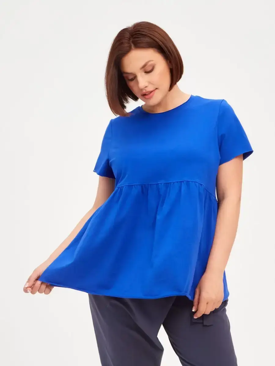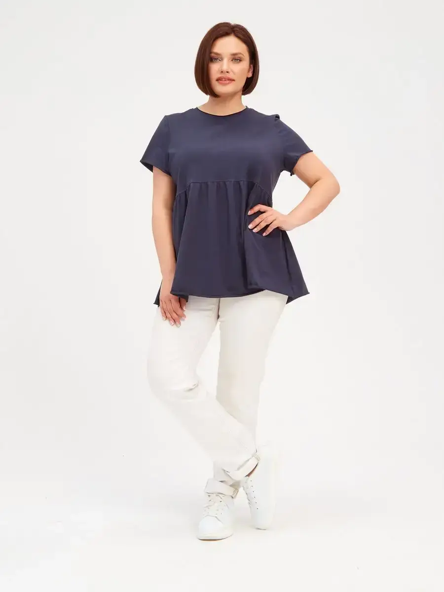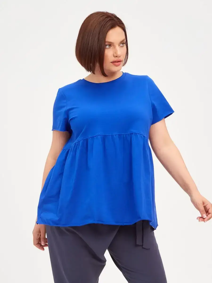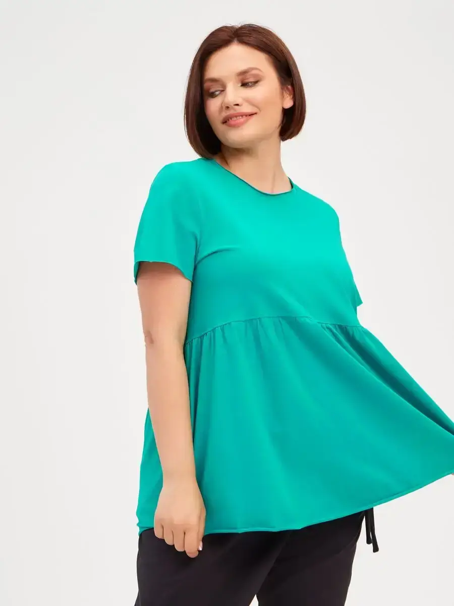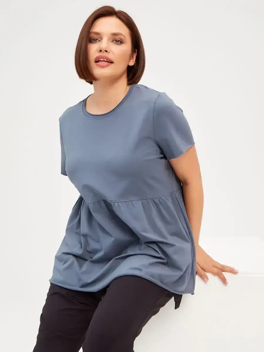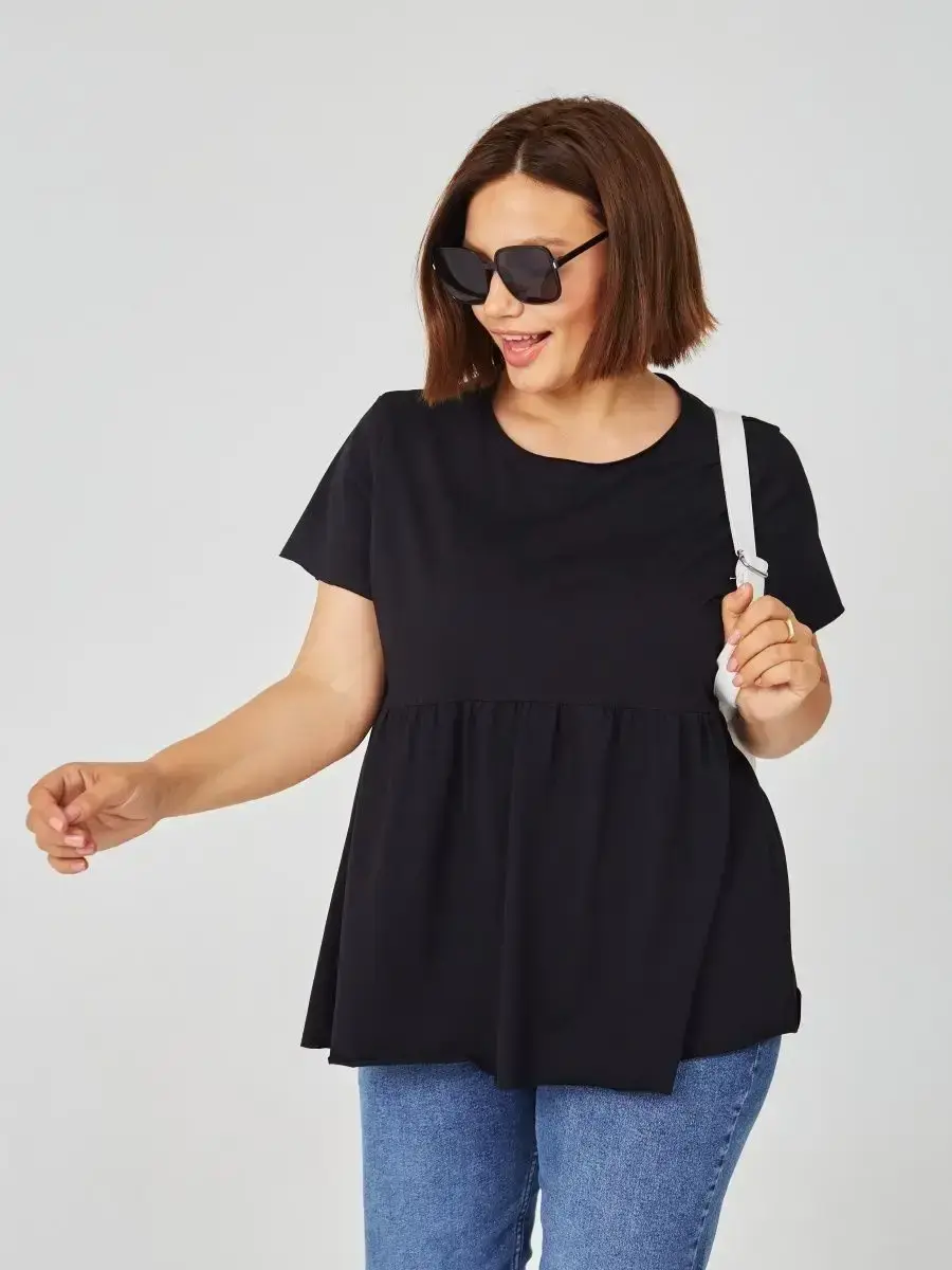 Женская летняя футболка с баской, округлым вырезом и коротким рукавом позволит вам выглядеть актуально всегда и везде. Однотонная футболка – женская базовая одежда для прогулок и офиса, которая отлично сочетается с любым низом. Свободный крой оверсайз при необходимости скроет несовершенства фигуры, а премиальный трикотаж из чистого хлопка обеспечит полный комфорт. Удлиненный хлопковый топ-блуза с баской – настоящая находка для женщин в ожидании чуда, а оригинальный силуэт oversize просто создан для обладательниц больших размеров. Прекрасный выбор на фотосессию для беременных