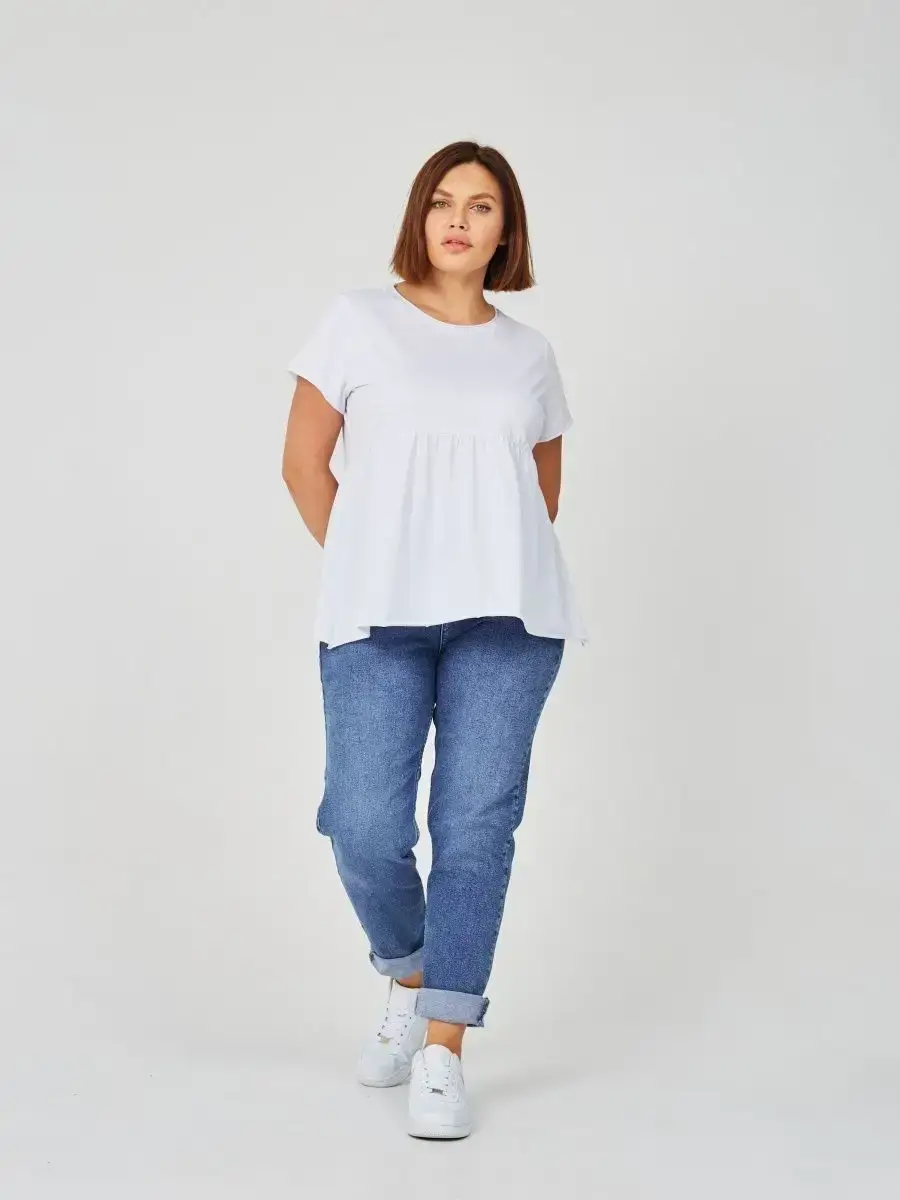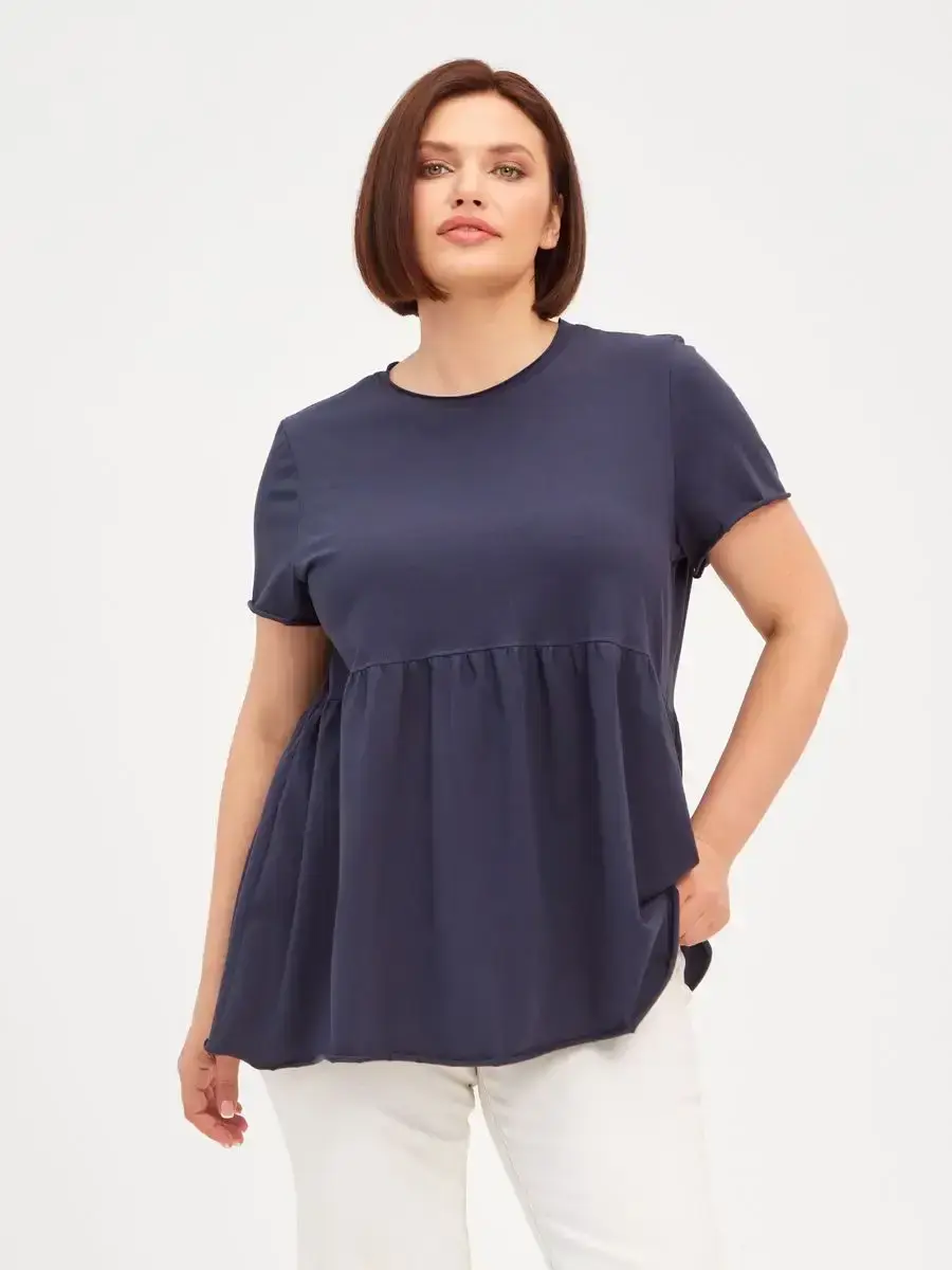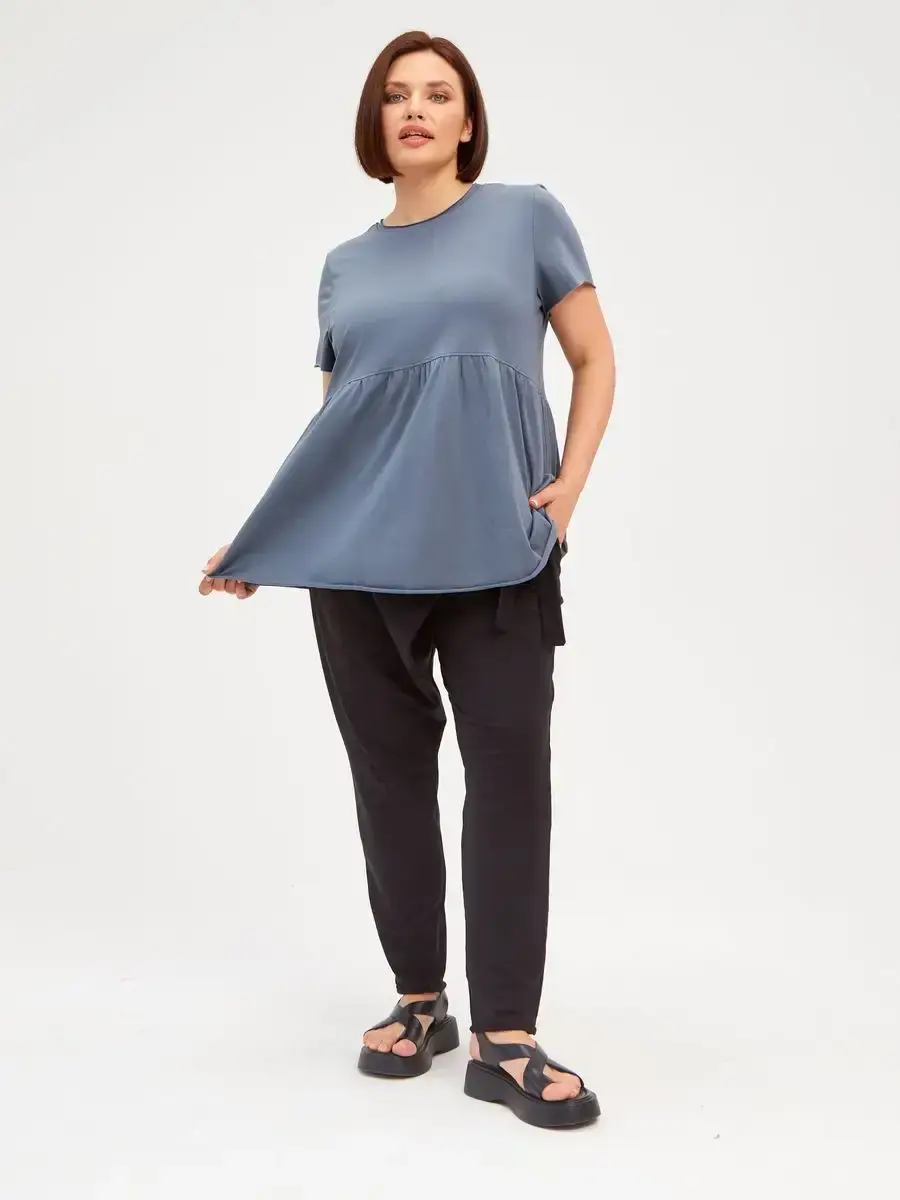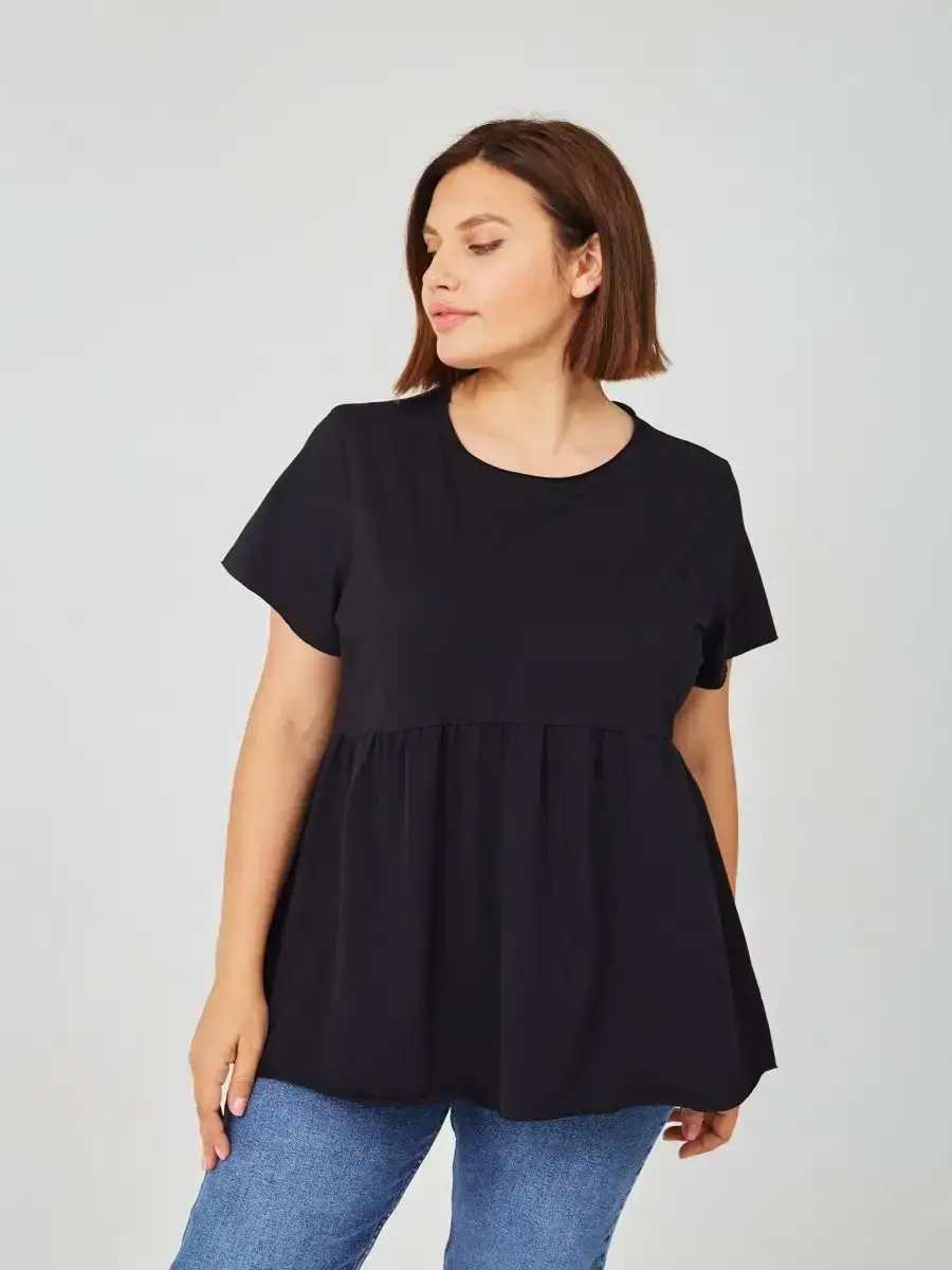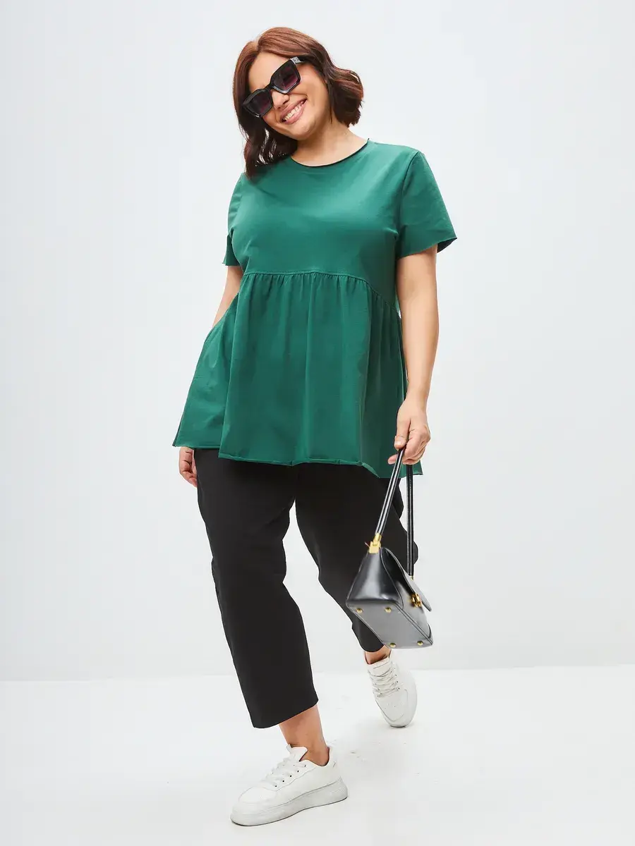 Женская летняя футболка с баской, округлым вырезом и коротким рукавом позволит вам выглядеть актуально всегда и везде. Однотонная футболка – женская базовая одежда для прогулок и офиса, которая отлично сочетается с любым низом. Свободный крой оверсайз при необходимости скроет несовершенства фигуры, а премиальный трикотаж из чистого хлопка обеспечит полный комфорт. Удлиненный хлопковый топ-блуза с баской – настоящая находка для женщин в ожидании чуда, а оригинальный силуэт oversize просто создан для обладательниц больших размеров. Прекрасный выбор на фотосессию для беременных