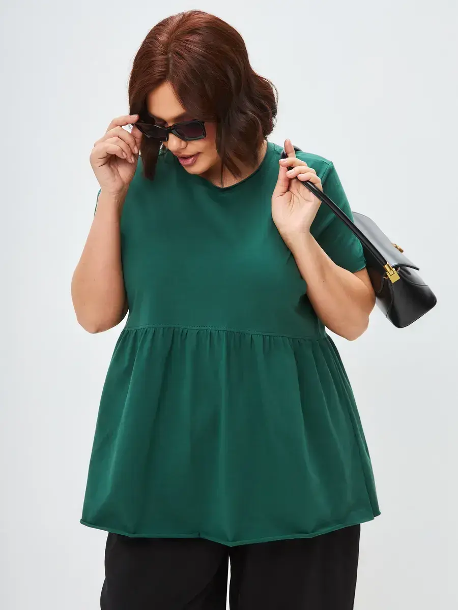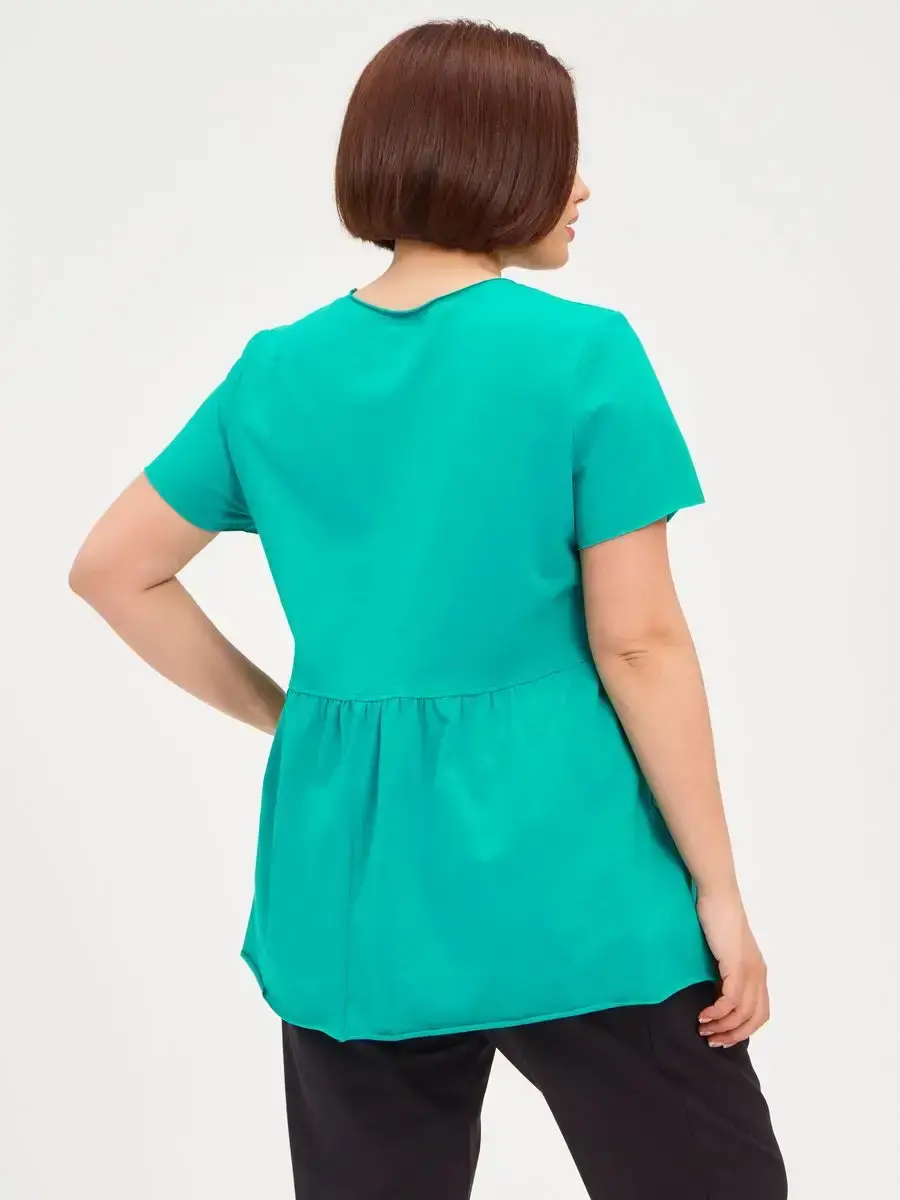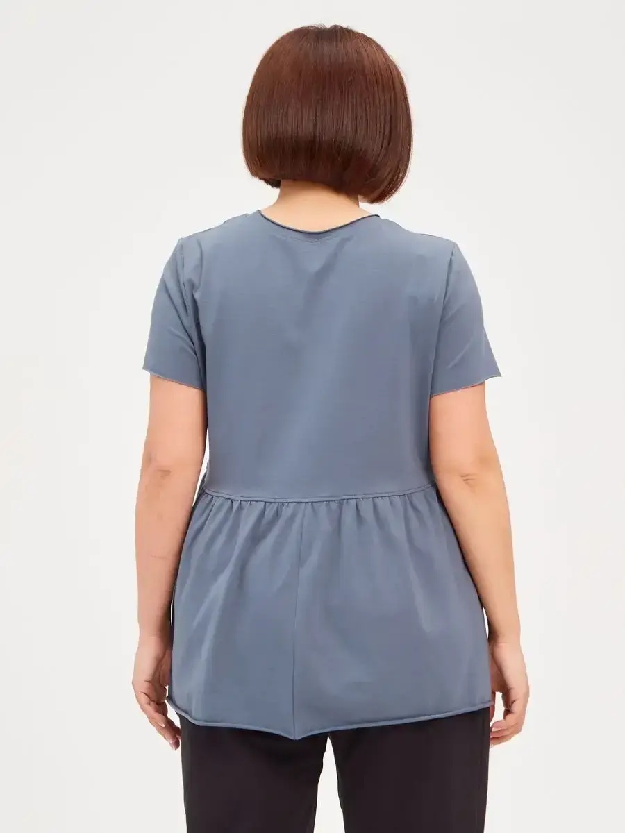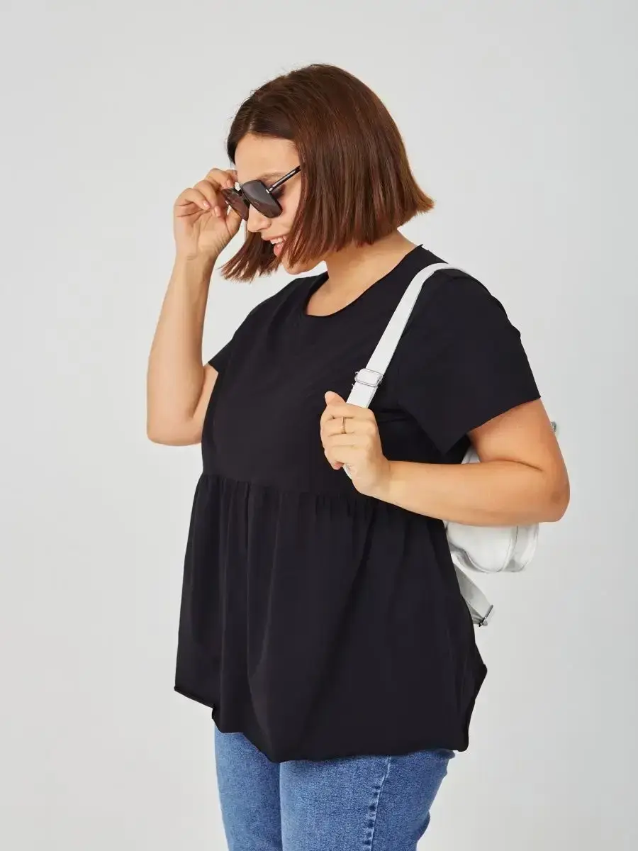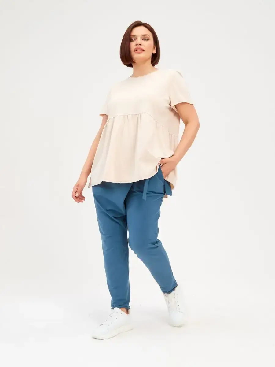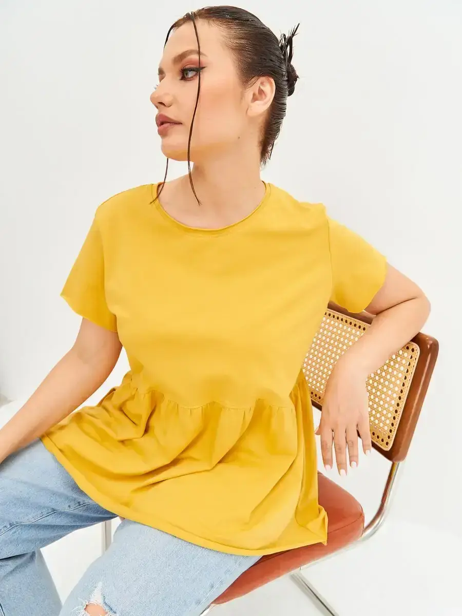 Женская летняя футболка с баской, округлым вырезом и коротким рукавом позволит вам выглядеть актуально всегда и везде. Однотонная футболка – женская базовая одежда для прогулок и офиса, которая отлично сочетается с любым низом. Свободный крой оверсайз при необходимости скроет несовершенства фигуры, а премиальный трикотаж из чистого хлопка обеспечит полный комфорт. Удлиненный хлопковый топ-блуза с баской – настоящая находка для женщин в ожидании чуда, а оригинальный силуэт oversize просто создан для обладательниц больших размеров. Прекрасный выбор на фотосессию для беременных