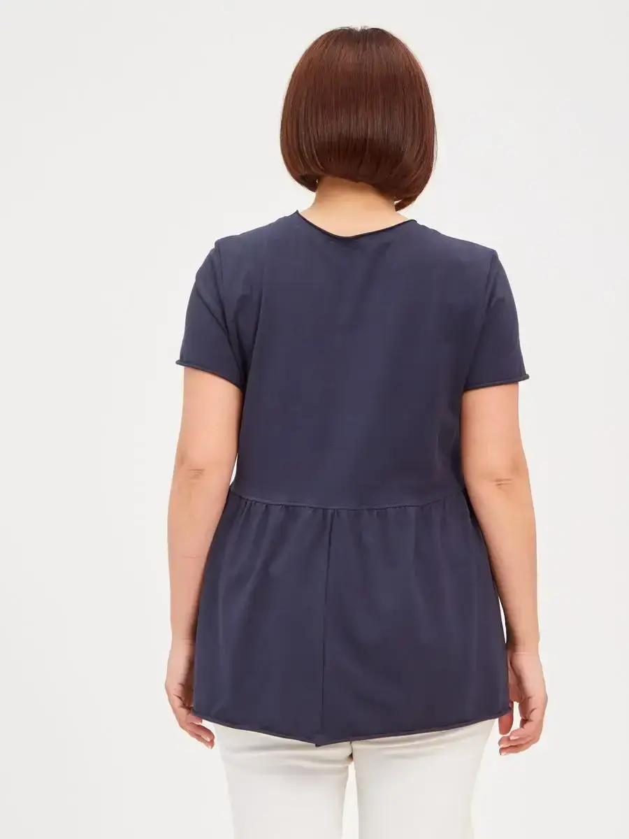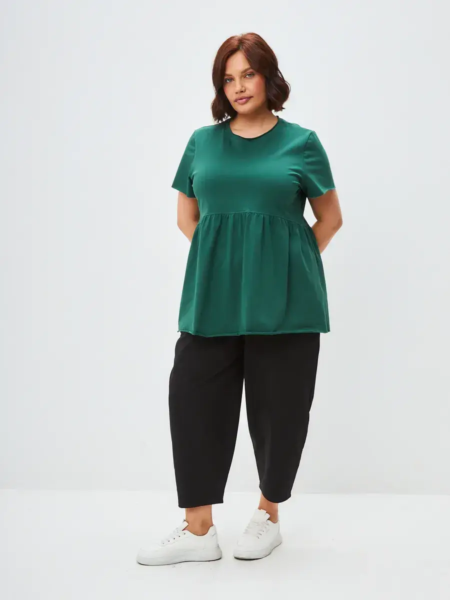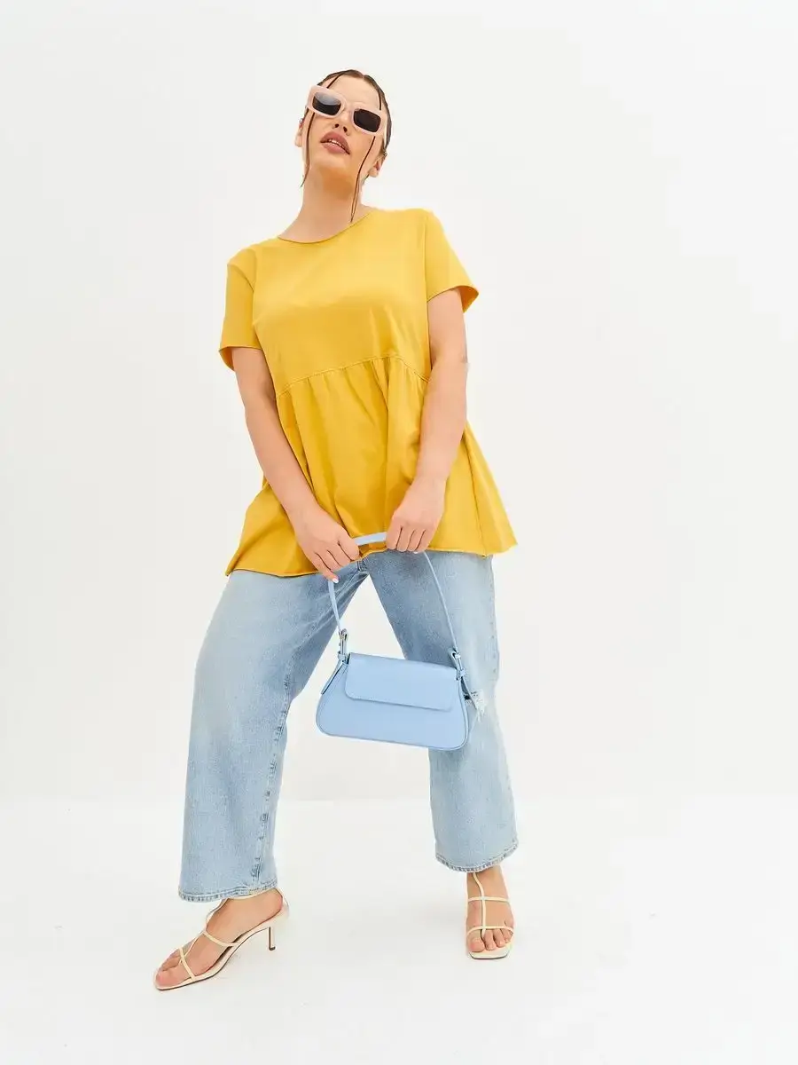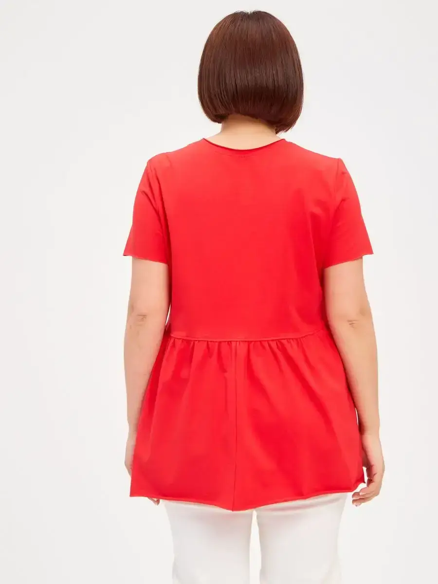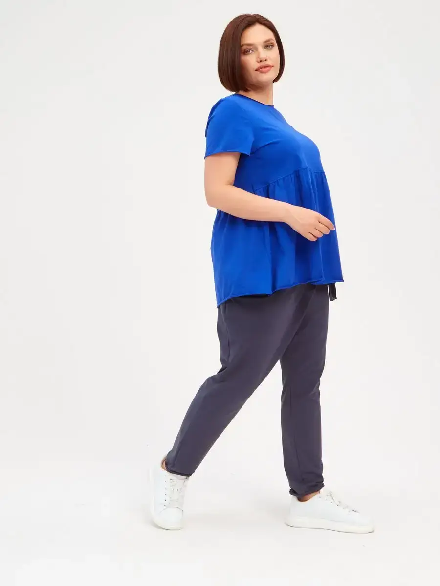 Женская летняя футболка с баской, округлым вырезом и коротким рукавом позволит вам выглядеть актуально всегда и везде. Однотонная футболка – женская базовая одежда для прогулок и офиса, которая отлично сочетается с любым низом. Свободный крой оверсайз при необходимости скроет несовершенства фигуры, а премиальный трикотаж из чистого хлопка обеспечит полный комфорт. Удлиненный хлопковый топ-блуза с баской – настоящая находка для женщин в ожидании чуда, а оригинальный силуэт oversize просто создан для обладательниц больших размеров. Прекрасный выбор на фотосессию для беременных