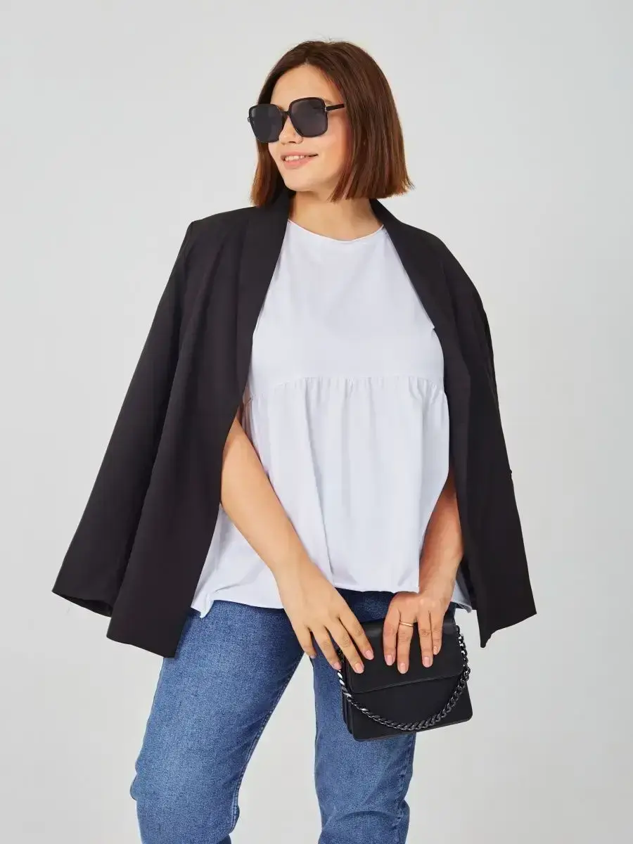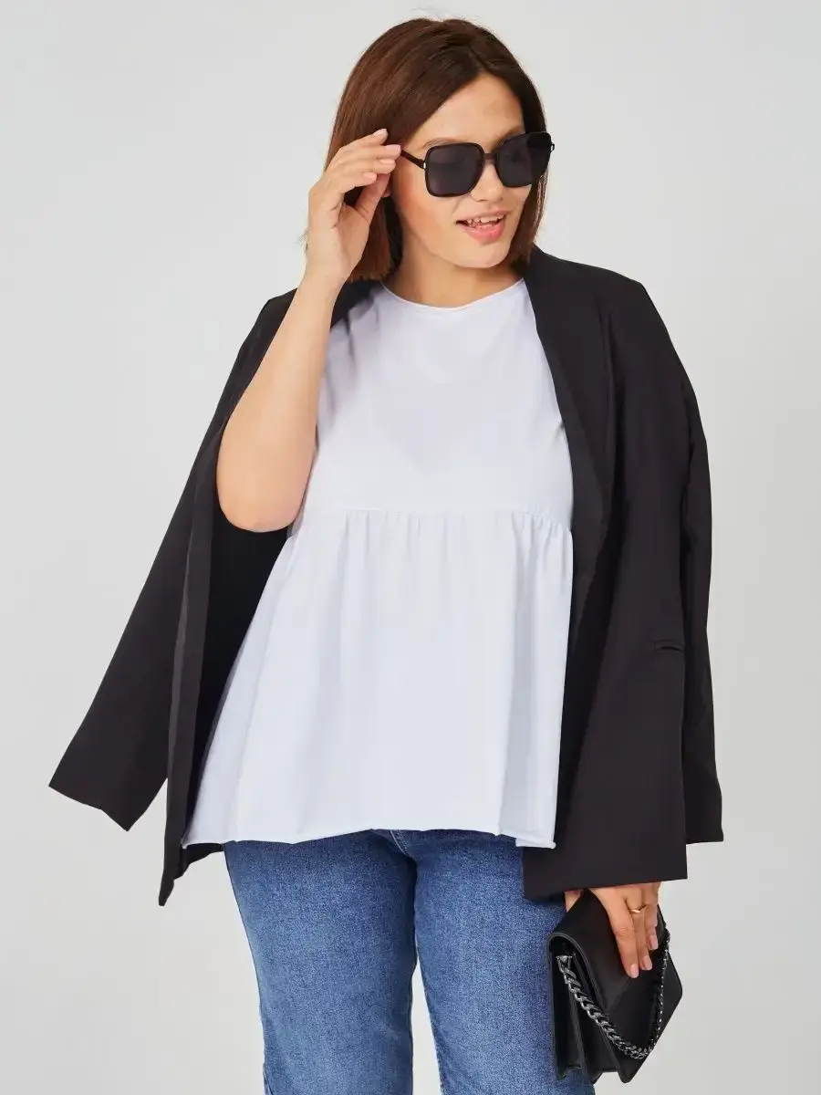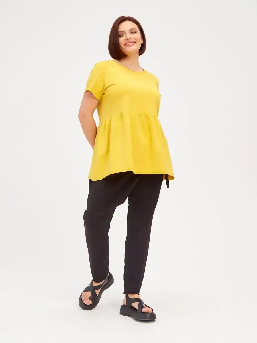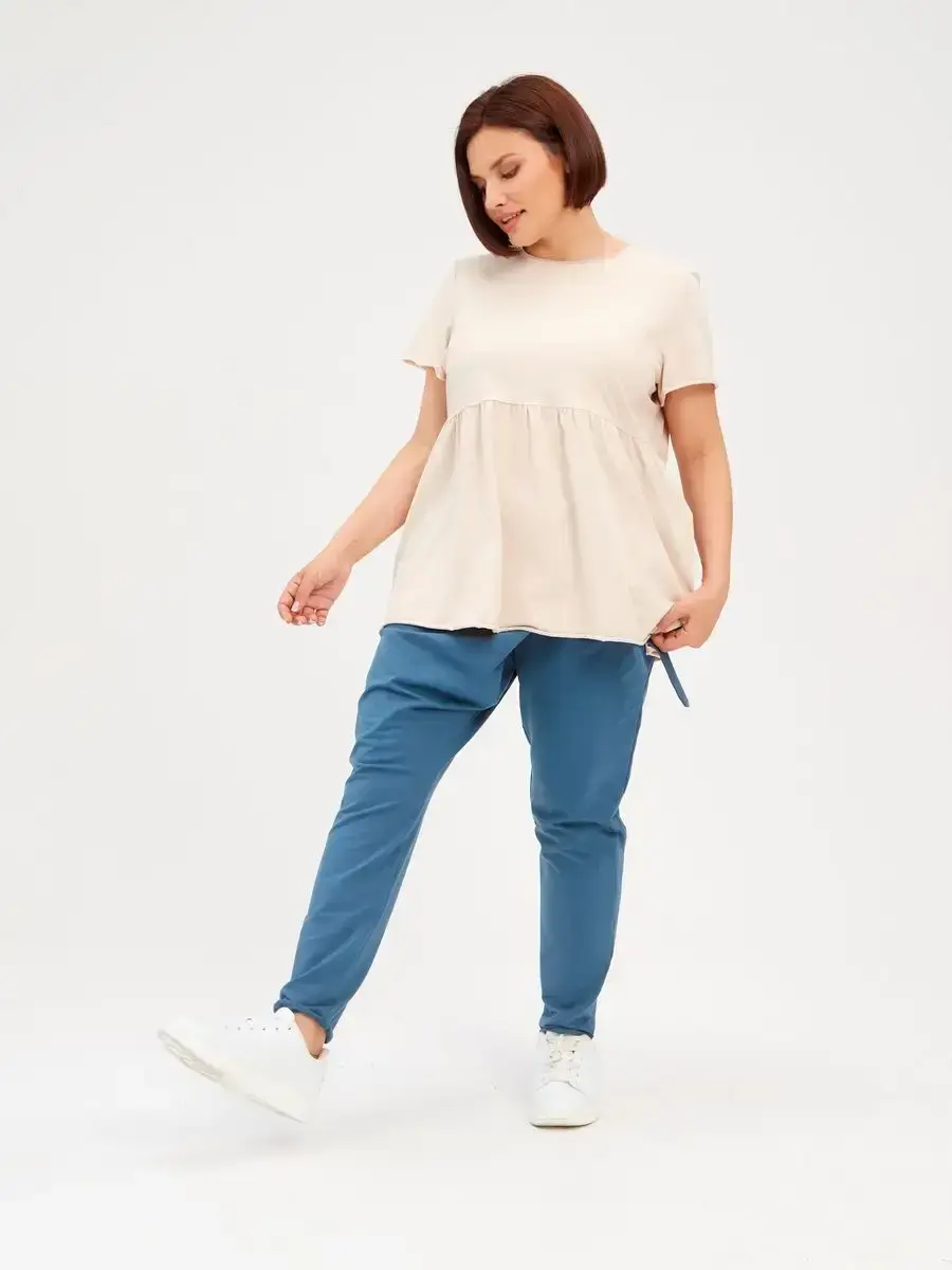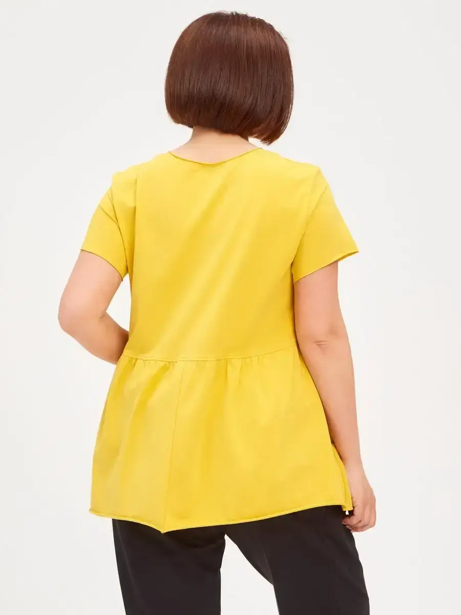 Женская летняя футболка с баской, округлым вырезом и коротким рукавом позволит вам выглядеть актуально всегда и везде. Однотонная футболка – женская базовая одежда для прогулок и офиса, которая отлично сочетается с любым низом. Свободный крой оверсайз при необходимости скроет несовершенства фигуры, а премиальный трикотаж из чистого хлопка обеспечит полный комфорт. Удлиненный хлопковый топ-блуза с баской – настоящая находка для женщин в ожидании чуда, а оригинальный силуэт oversize просто создан для обладательниц больших размеров. Прекрасный выбор на фотосессию для беременных