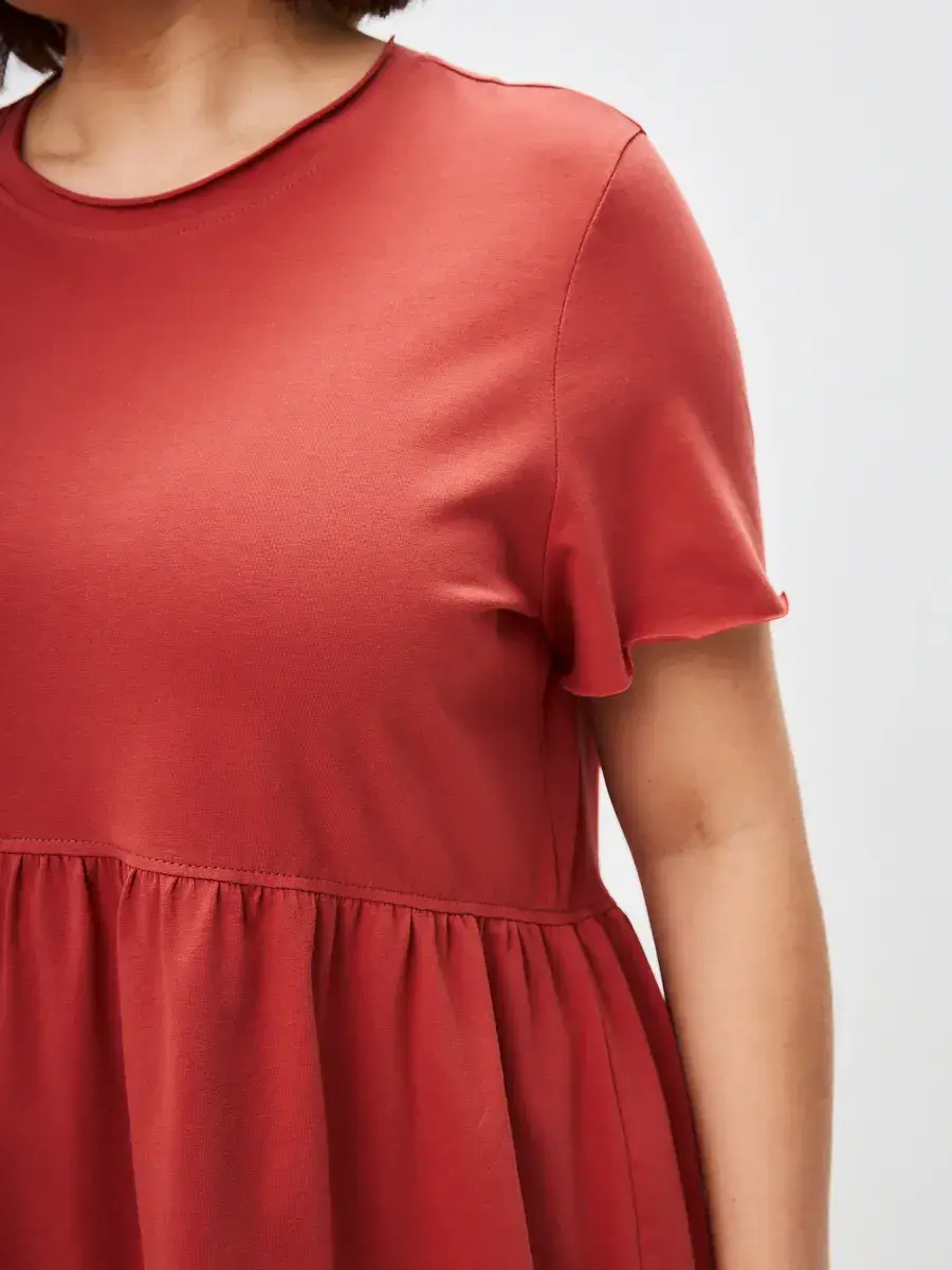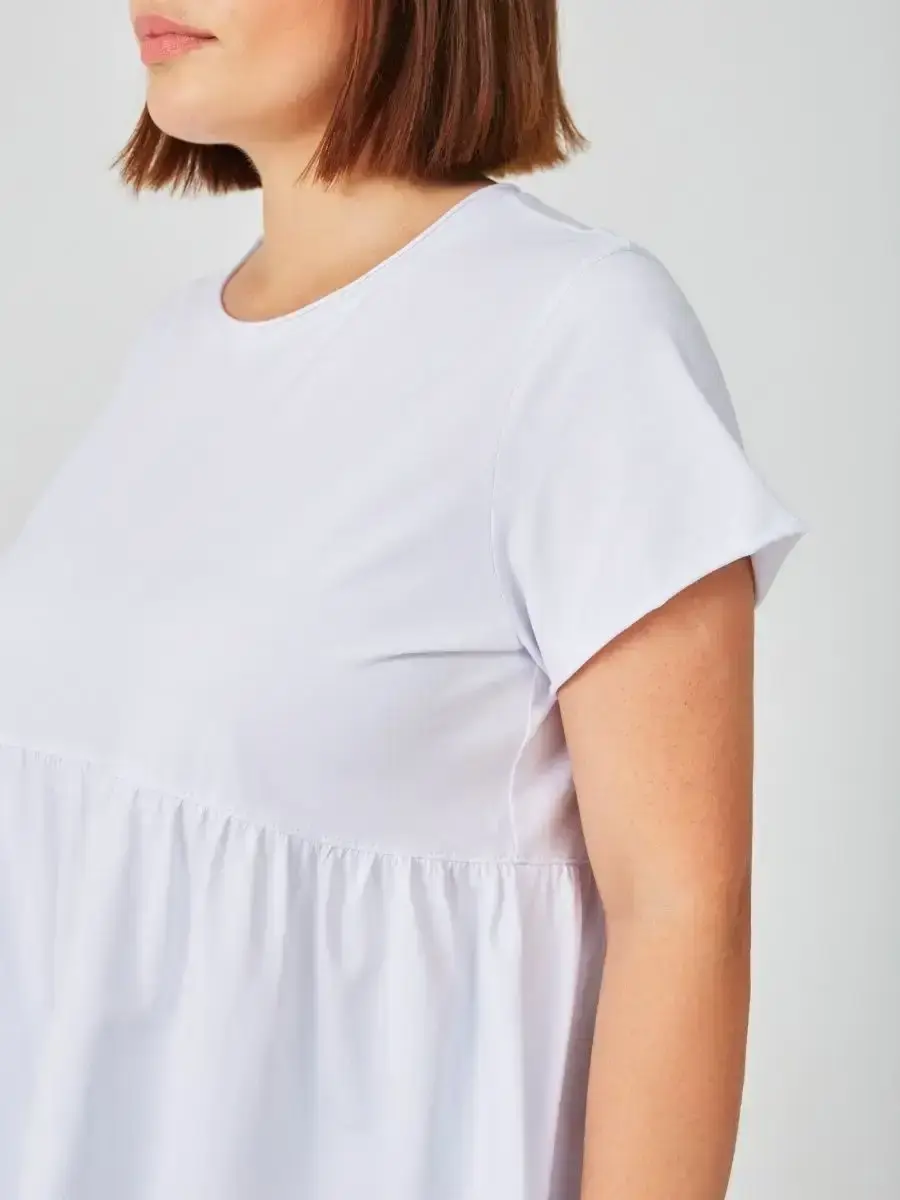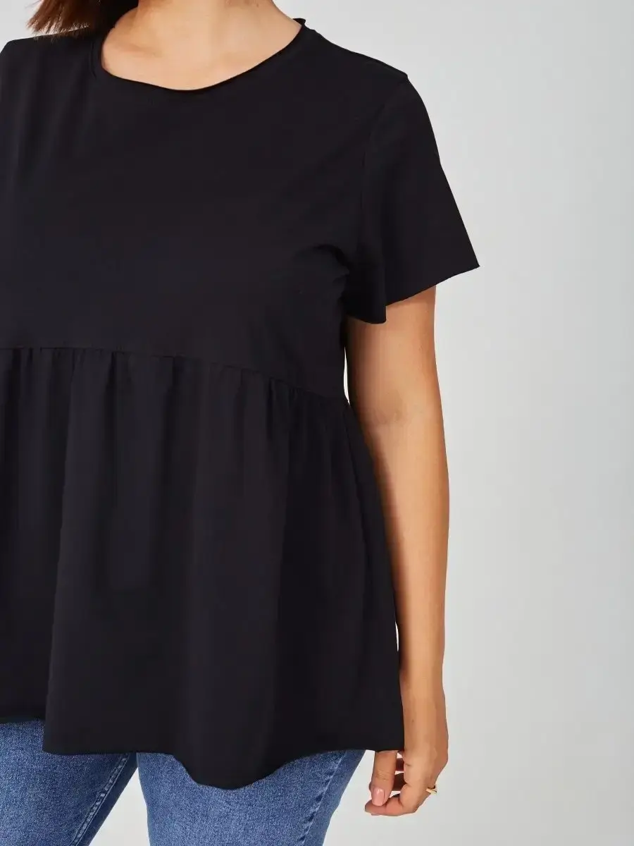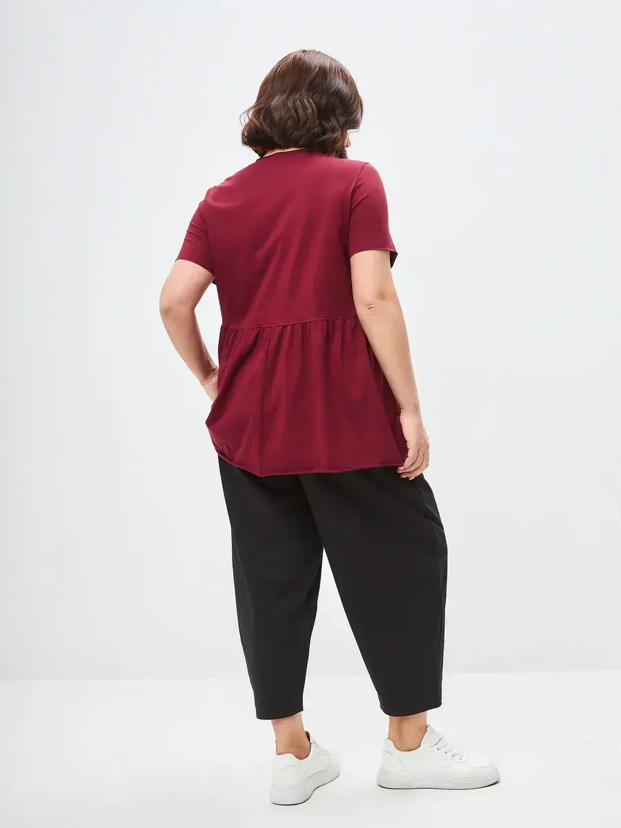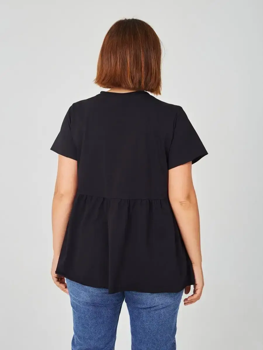 Женская летняя футболка с баской, округлым вырезом и коротким рукавом позволит вам выглядеть актуально всегда и везде. Однотонная футболка – женская базовая одежда для прогулок и офиса, которая отлично сочетается с любым низом. Свободный крой оверсайз при необходимости скроет несовершенства фигуры, а премиальный трикотаж из чистого хлопка обеспечит полный комфорт. Удлиненный хлопковый топ-блуза с баской – настоящая находка для женщин в ожидании чуда, а оригинальный силуэт oversize просто создан для обладательниц больших размеров. Прекрасный выбор на фотосессию для беременных
