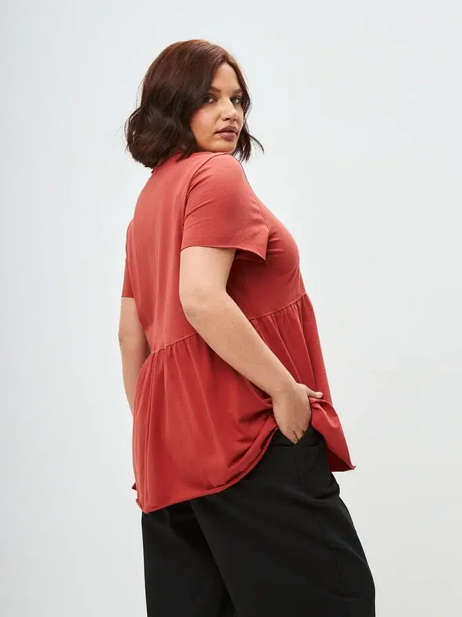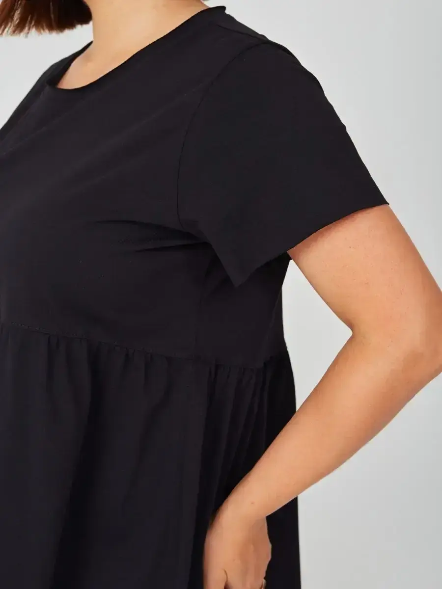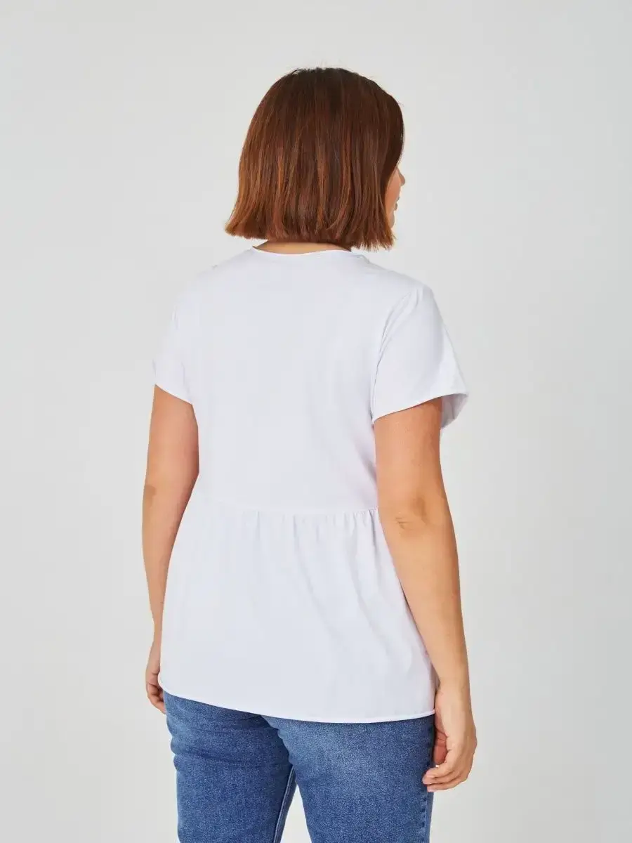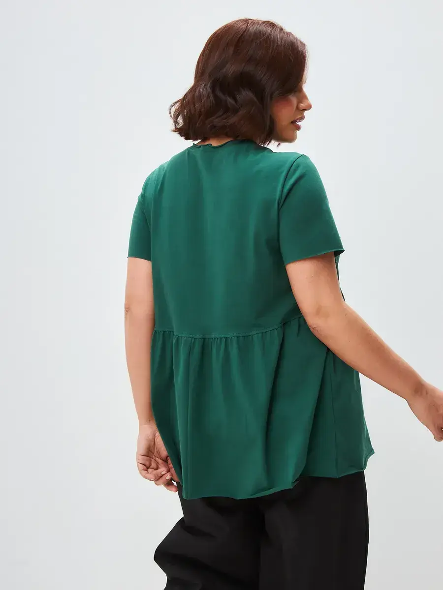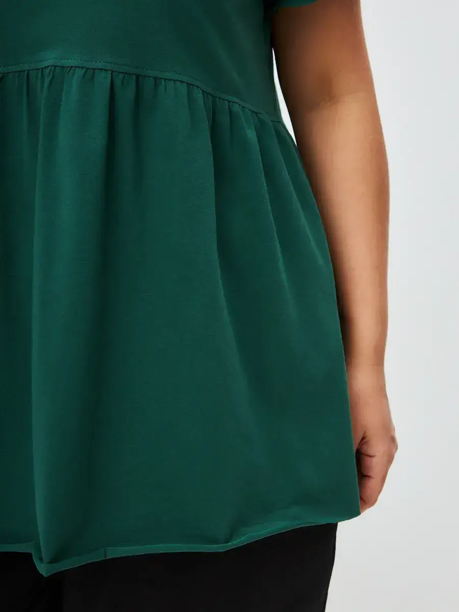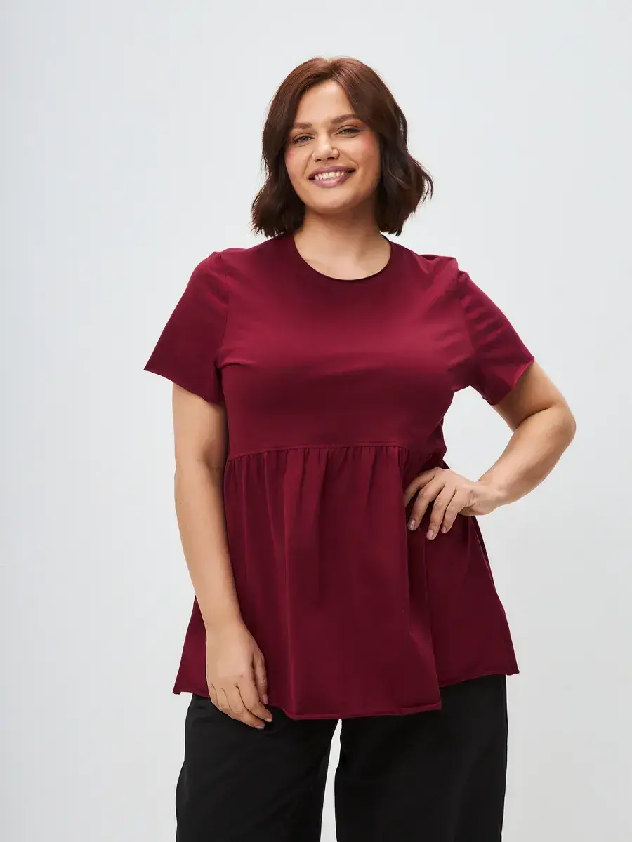 Женская летняя футболка с баской, округлым вырезом и коротким рукавом позволит вам выглядеть актуально всегда и везде. Однотонная футболка – женская базовая одежда для прогулок и офиса, которая отлично сочетается с любым низом. Свободный крой оверсайз при необходимости скроет несовершенства фигуры, а премиальный трикотаж из чистого хлопка обеспечит полный комфорт. Удлиненный хлопковый топ-блуза с баской – настоящая находка для женщин в ожидании чуда, а оригинальный силуэт oversize просто создан для обладательниц больших размеров. Прекрасный выбор на фотосессию для беременных