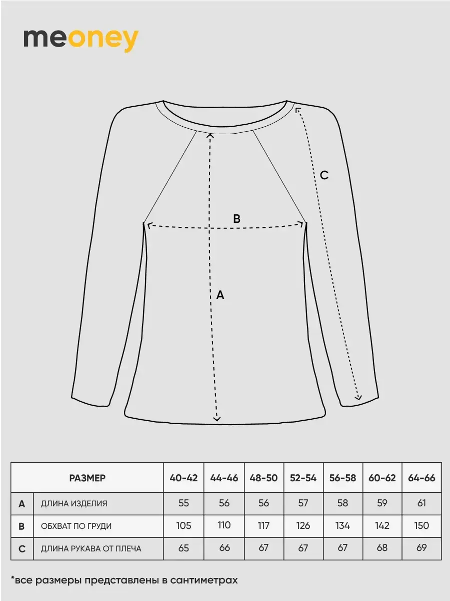 Мы бренд - meoney, ежедневно трудимся для совершенствования нашей продукции и над запуском актуальных новинок. Все наши изделия выполнены из премиальной ткани, которая проходит двойной контроль качества на всех стадиях производства. Все наши модели сделаны для женщин, которые выбирают качество и удобство, находящиеся в полной синергии с трендами и стилем. Рады представить для вас нашу новинку - лонгслив женский с рукавом реглан и необработанными кроями. Как и большинство наших продуктов, наш женский лонгслив реглан выполнен в трендовом стиле легкого оверсайза, а необработанне кроя, аккуратно подвернувшиьс после стирки, подчеркнут уникальность вашего образа. Наш лонгслив женский оверсайз идельано подойдет на любую фигуру, беременным и тем, кто носит большие размеры. Дышащий высококачественный материал женской кофты позволит вашей коже дышать и ощущать комфорт при носке в любую погоду. Выбирая наш бренд, вы получаете высококачественную одежду и море наслаждения нашей продукцией