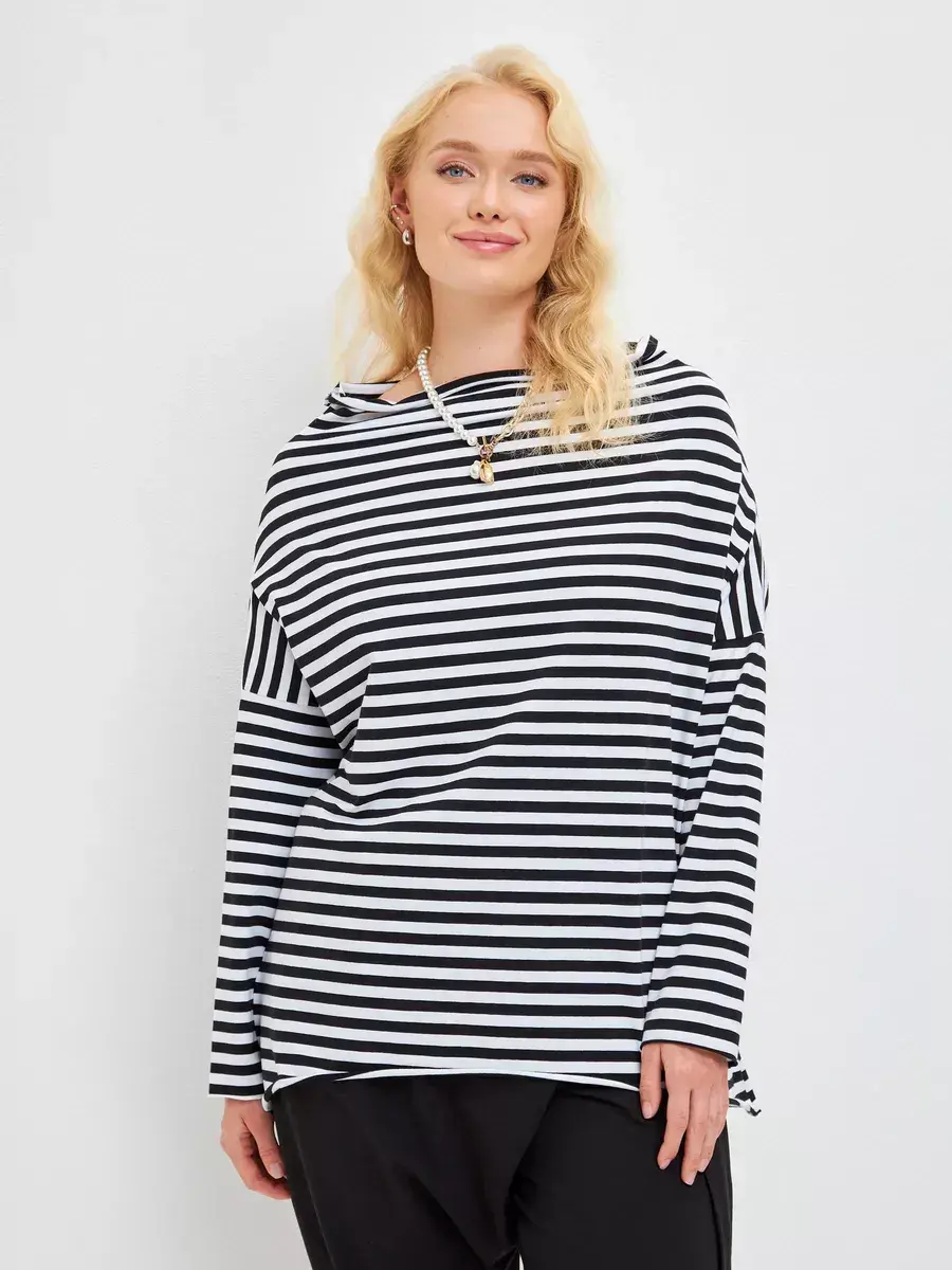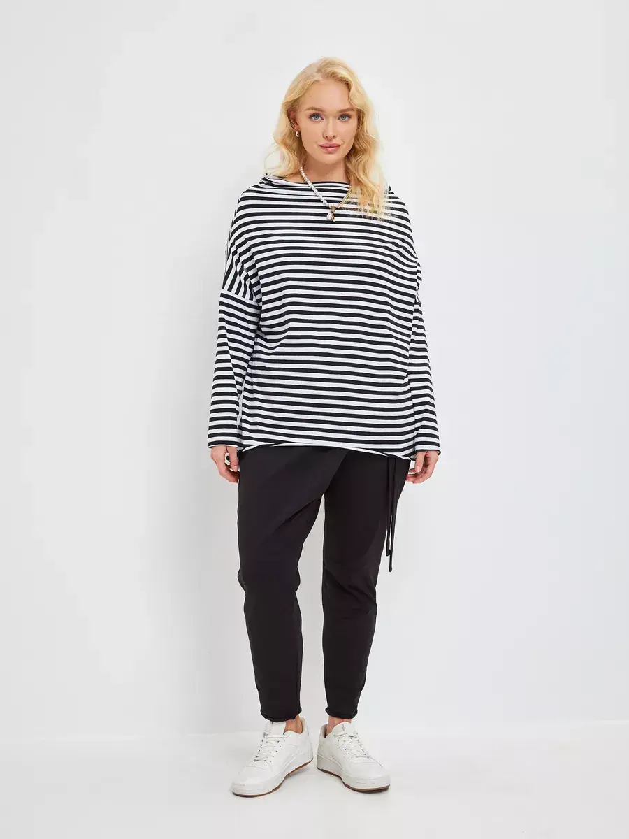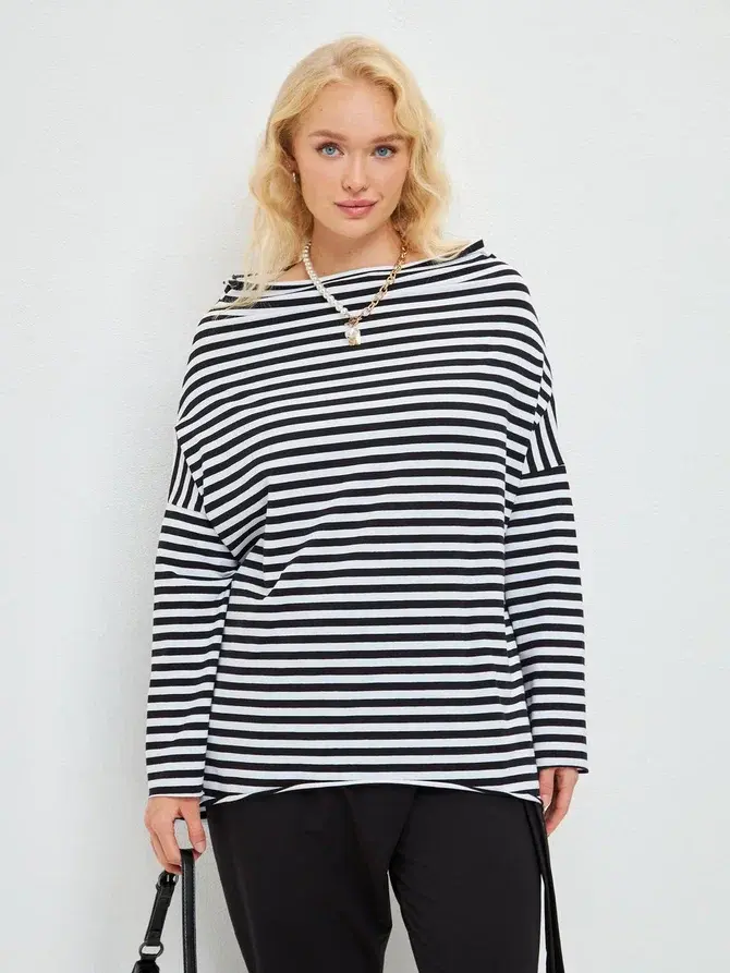 Наша гордость, которая полюбилась миллионам девушек в России. Работая над этим женским лонгсливом, мы думали о том как совместить стиль бохо с классикой осеннего гадероба - лонгслив женский с вырезом лодочка. И благодаря вашей обратной связи мы поняли, что нам удалось создать идеальныый лонгслив женский оверсайз. Наш лонгслив в полоску на осень выполнена из премиальной хлопковой ткани, которая была создана на солнечных берегах Средиземного моря. Лонгслив тельняшка выполнен в оверсайз стиле, что идеально подходит для беременных, будущих мам, а так же для обладательниц пышных фигур. Лонегслив женский большого размера, идеальный выбор для обладательниц plus size на любой повод, будь то офис, поход в ресторан или вечерняя прогулка. Лонгслив с вырезом лодочка идеально дополнит любой гардероб, а наша палитра цветов удовлетворит любой вкус. Носите данный лонгслив женский в полоску с удовольствием, мы очень старались сделать его идеальным для вас!