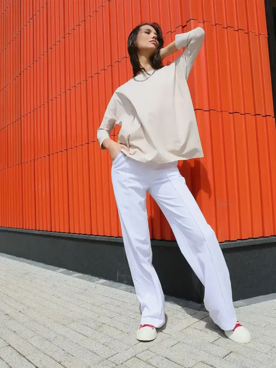 Очаровывающие, струящиеся по фигуре, женские брюки палаццо - это последний тренд в мире моды! Этот многофункциональный элемент одежды превосходно подойдёт для любого случая: будь то деловая встреча в офисе, со строгим дресс-кодом, или расслабленная прогулка по парку, а также их можно носить для танцев и других тренировок. Ваша индивидуальность в полном объеме выражается через эти однотонные, прямые широкие штаны oversize, которые особенно любят девушки, ценящие уют и изящный дизайн. Они обладают расслабленной посадкой на талии, идеально подходят для женщин любых размеров и роста, в том числе для девочек подростков. Резинка по всей окружности талии обеспечивает комфорт и непревзойденную подгонку. Трикотажный высококачественный хлопковый материал сохраняет свою форму, не образуя катышков и не растягиваясь на коленях. Более того, он обеспечивает безупречную воздухопроницаемость, сохраняет яркость цвета после стирки и легко переносит глажку. Стильные и комфортные, они будут замечательно сочетаться с вашим гардеробом, создавая модный и современный образ. Отдайте предпочтение комфорту, без ущерба для стиля, с нашими элегантными палаццо! Внесите яркий, стильный акцент в свой ассортимент, добавив наш шедевр - ваша жизнь станет немного круче и уютнее!