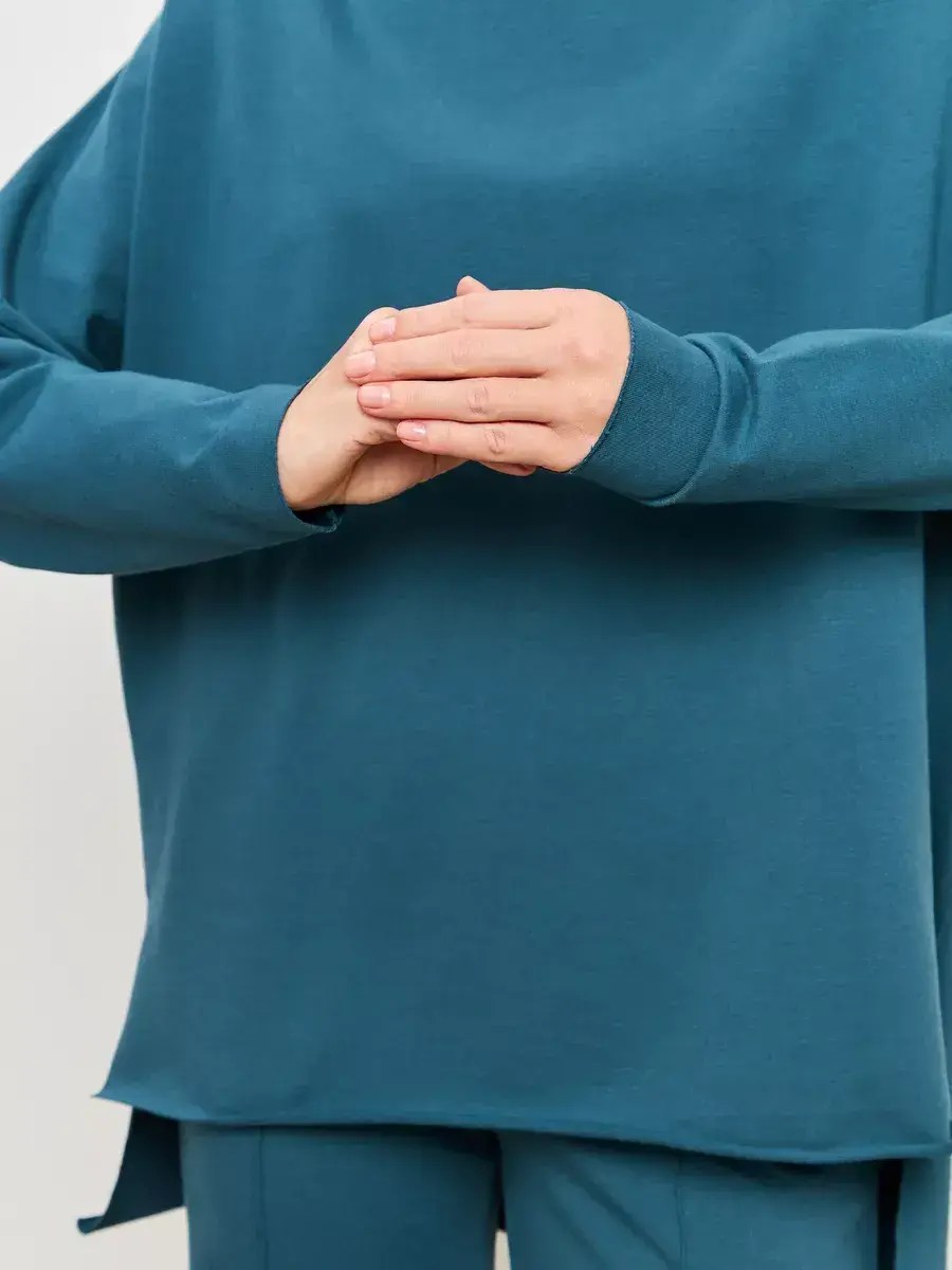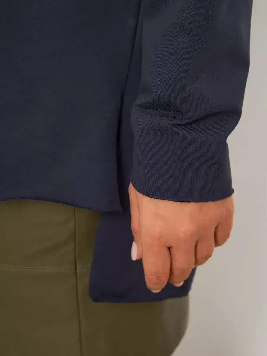 Свитшот удлиненный женский по-прежнему удерживает трендовую популярность. Объемная модель прямого покроя со спущенным плечом и широкими рукавами все еще на пике моды и в сезон осень зима 2023. Невероятно уютная кофта выполнена из мягкого высококачественного трикотажа футер двухнитка с содержанием хлопка 95%. Добавление 5% эластана обеспечивает пуловеру практичность в носке и износостойкость. Прекрасно комбинируется с любой одеждой под разный стиль - спортивный, повседневный, кэжуальный, классический, дорожный, школьный, офисный. Достаточно обыграть его нужными аксессуарами и обувью, чтобы свободный свитшот подходил под любой случай жизни. Толстовка женская больших размеров по-настоящему идеальная одежда для беременных женщин и кормящих мам, так как обеспечивает комфорт на целый день.