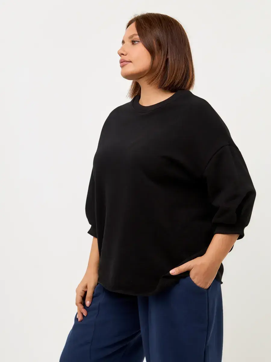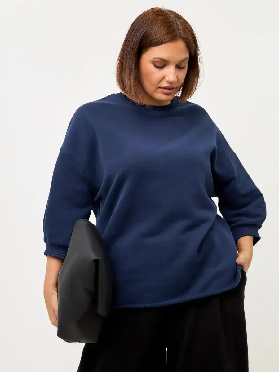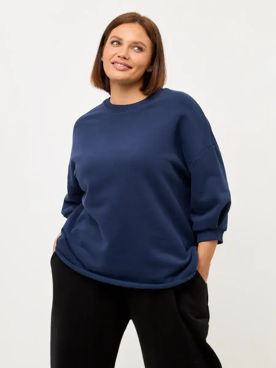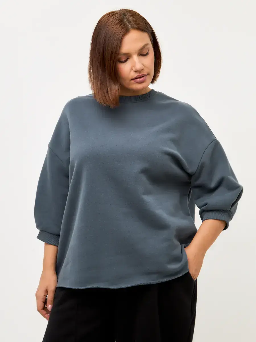 Внимание!!! При заказе рекомендуем использовать таблицу размеров размещенную на 5 фото! Дорогие дамы, рады представить для вас нашу новинку - Свитшот женский теплый с начесом. Модель свободной посадки за счет заниженной линии плеча и прямого кроя. Премиальное полотно с гладкой поверхностью снаружи, внутренняя с теплым начесом, что придает изделию мягкость и объём, а вам тепло и чувство бесконечного комфорта. Наш свитшот оверсайз отлично подойдет для зимних прогулок, повседневной носки и на работу, а также он согреет вас в холодные вечера дома. Для нашей толстовки без капюшона мы выбрали рукава 3/4, которые на протяжении нескольких десятилетий являются трендом во всех стилях и модных направлениях. Оверсайз крой нашего свитшота идеально подходит беременным и тем, кто нуждается в стильных вещах больших размеров.