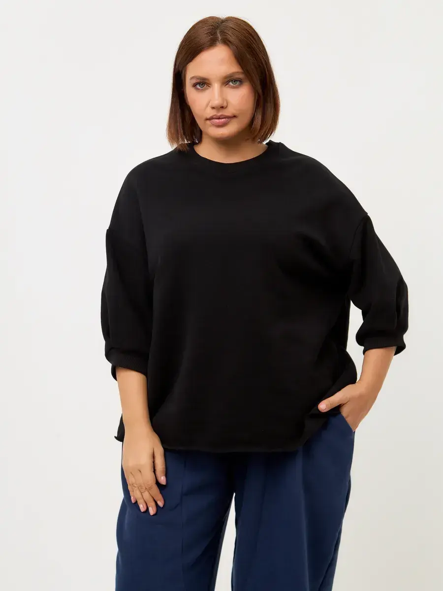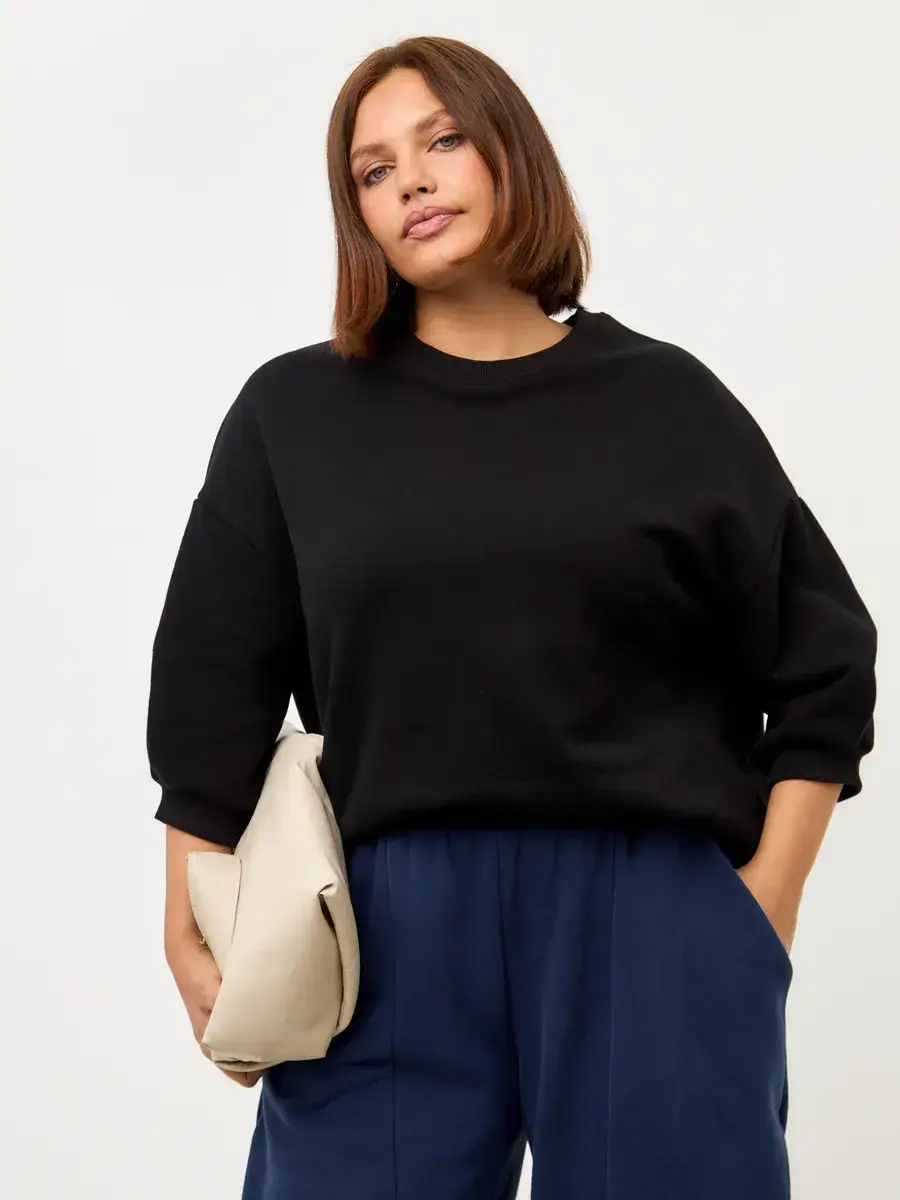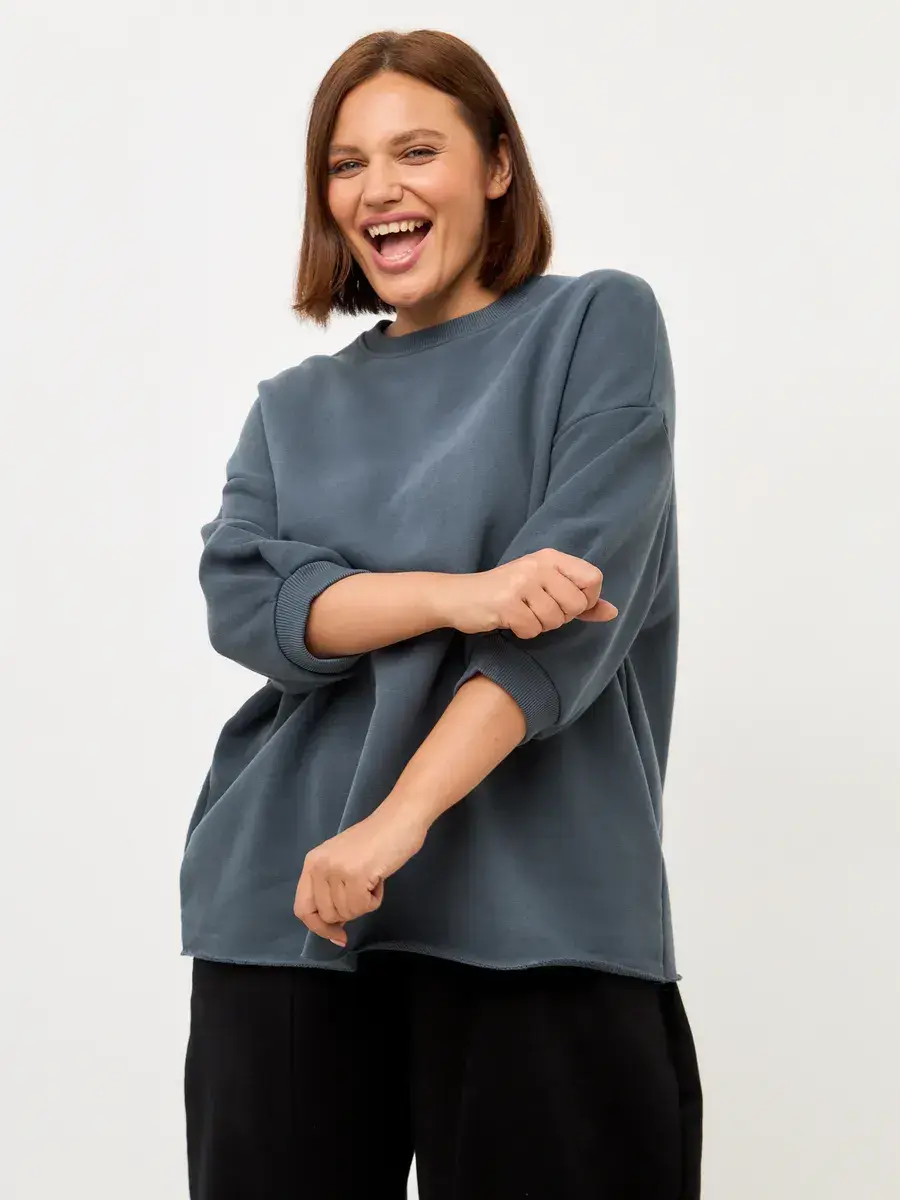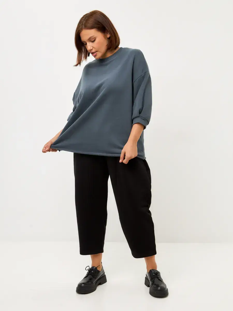 Внимание!!! При заказе рекомендуем использовать таблицу размеров размещенную на 5 фото! Дорогие дамы, рады представить для вас нашу новинку - Свитшот женский теплый с начесом. Модель свободной посадки за счет заниженной линии плеча и прямого кроя. Премиальное полотно с гладкой поверхностью снаружи, внутренняя с теплым начесом, что придает изделию мягкость и объём, а вам тепло и чувство бесконечного комфорта. Наш свитшот оверсайз отлично подойдет для зимних прогулок, повседневной носки и на работу, а также он согреет вас в холодные вечера дома. Для нашей толстовки без капюшона мы выбрали рукава 3/4, которые на протяжении нескольких десятилетий являются трендом во всех стилях и модных направлениях. Оверсайз крой нашего свитшота идеально подходит беременным и тем, кто нуждается в стильных вещах больших размеров.